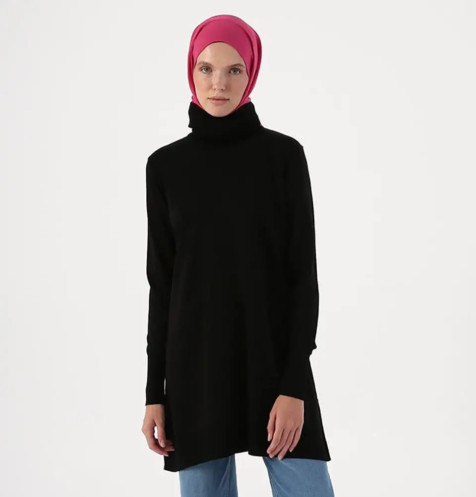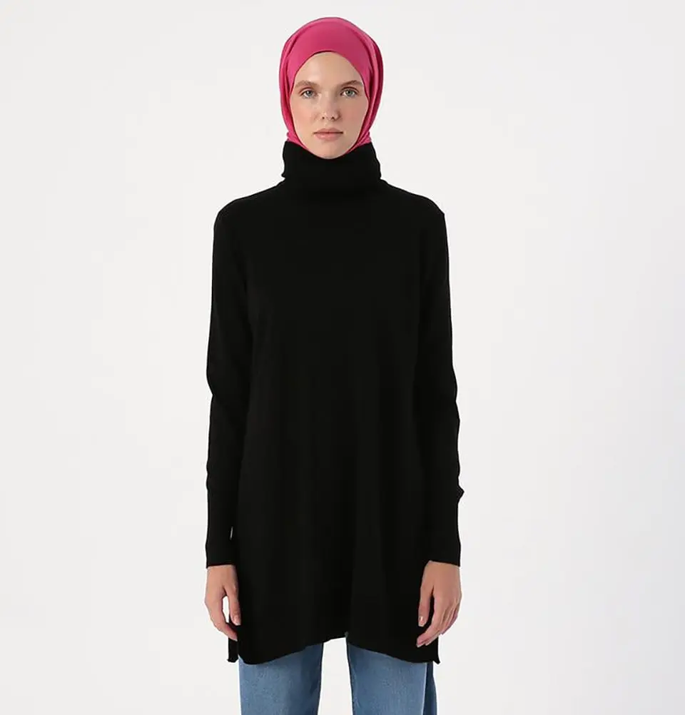 Modest Muslim Women's Long Turtleneck Tunic - 94017 Black