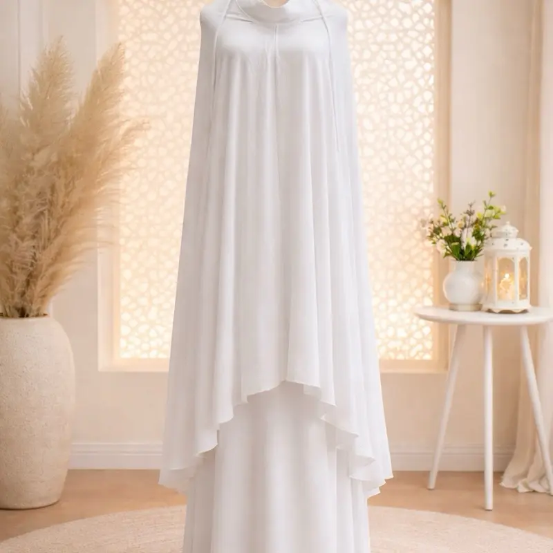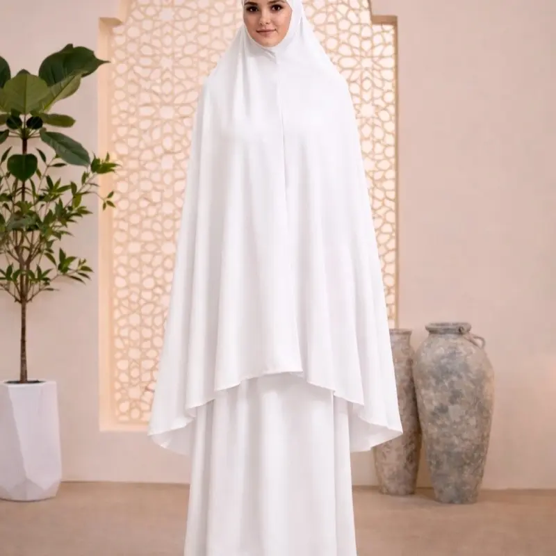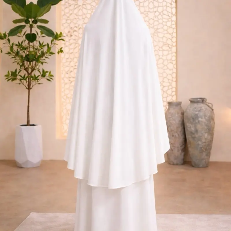 White Prayer Set for Women Two-Piece Khimar Skirt Modest Islamic Wear with Elegant Design