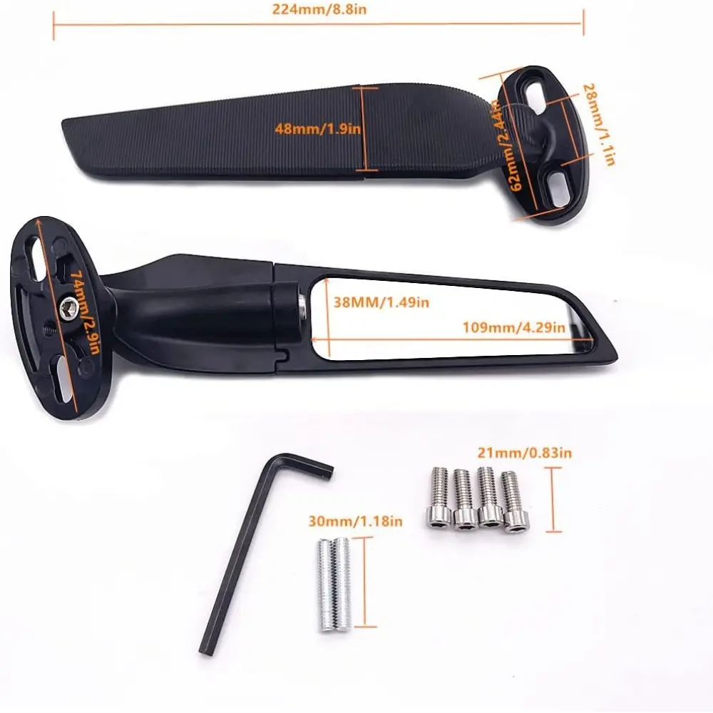 ·【FIT FOR】Our Wing Rearview Mirrors designed for super sports bikes, replacement for Honda CBR1000RR / CBR600RR / CBR250R / CBR250RR / CBR300R / CBR500R etc. for Kawasaki Ninja 300 / Ninja 400 / Ninja 650 / ZX6R / ZX10R etc. for Suzuki GSXR600 / GSXR750 / GSXR1000 / GSX1300R / GSX650F etc. for Yamaha R1 R15 R25 R125 R3 R6S YZF600R etc