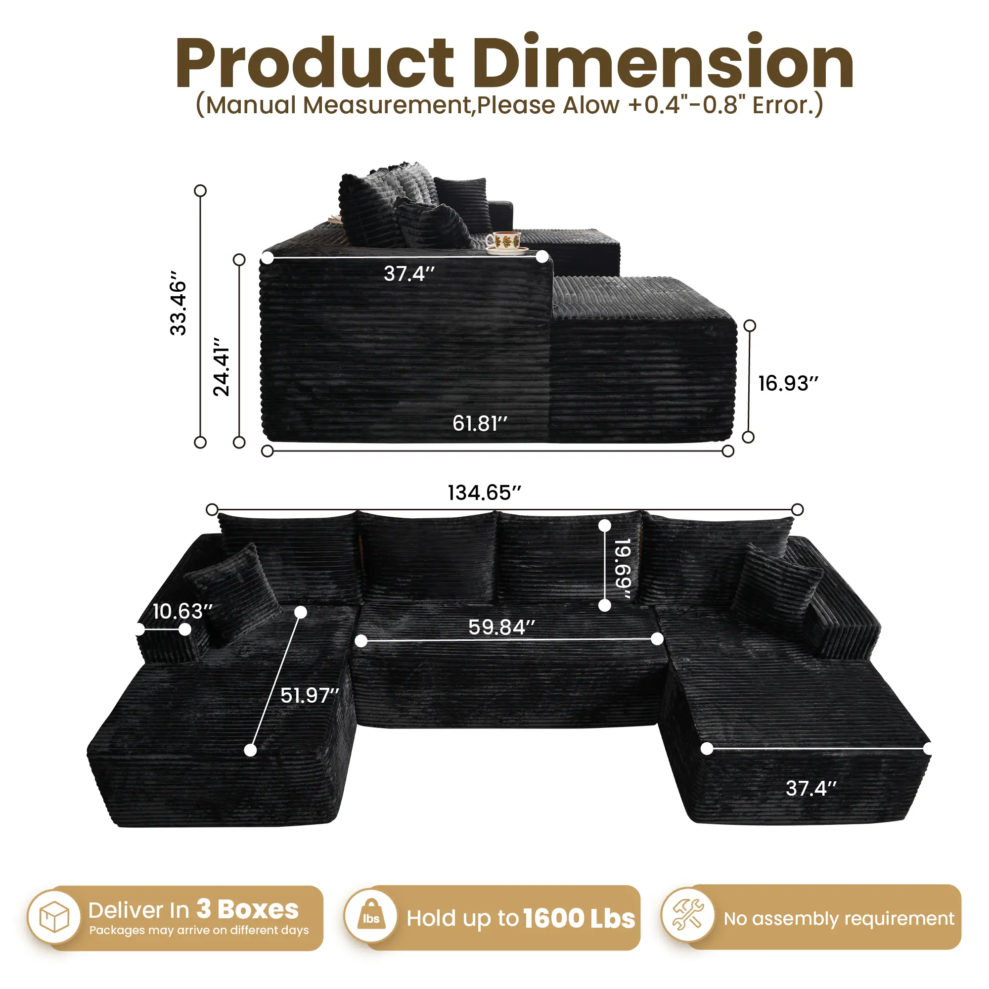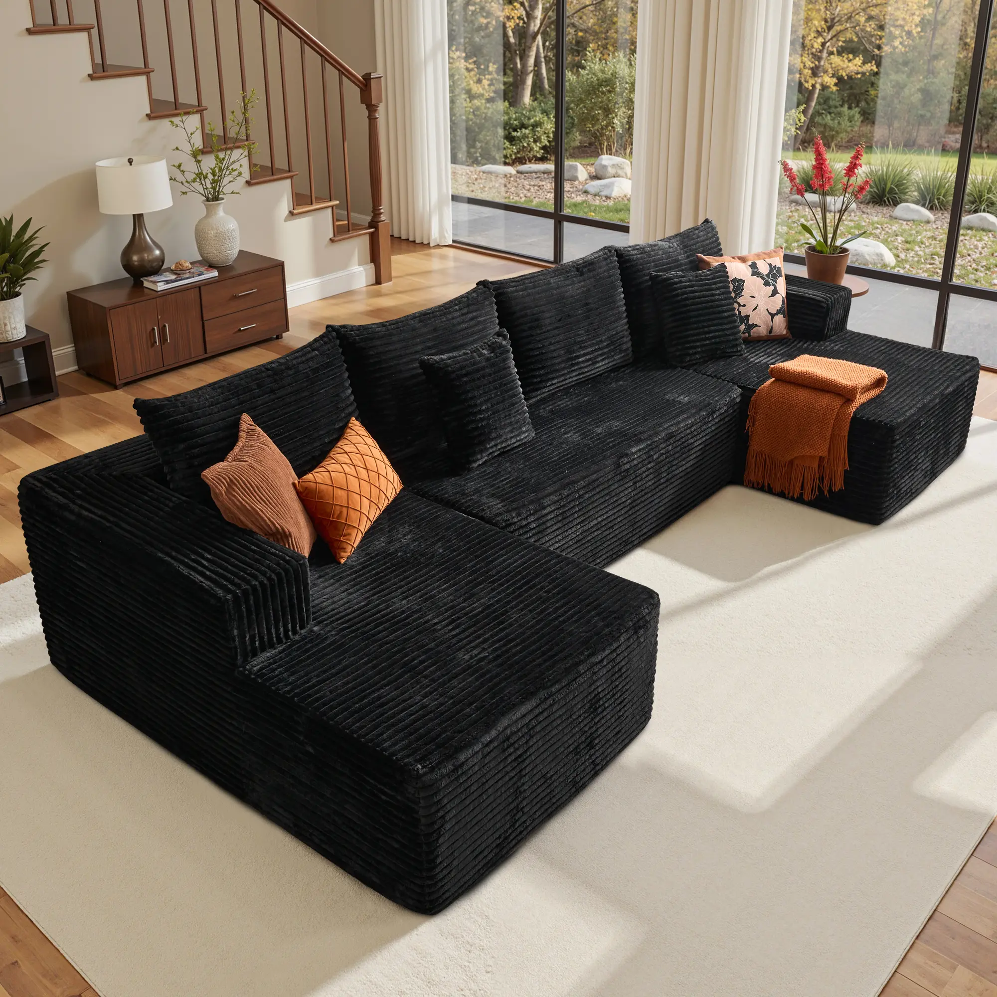Black U-Shape with Upgraded Back Cushion, 2*Chaise