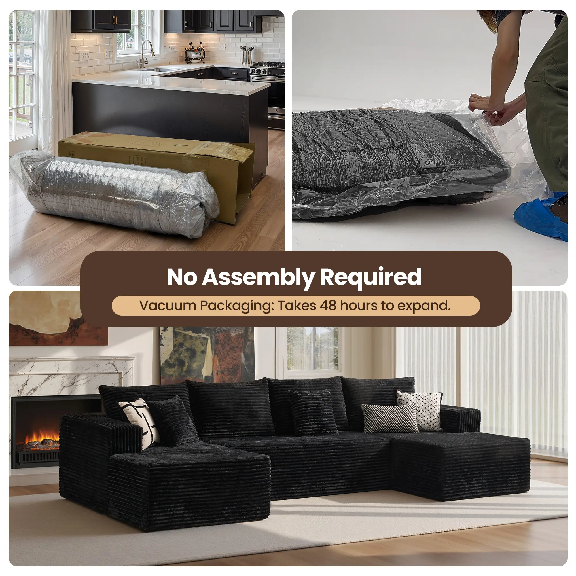 Black U-Shaped without Upgraded Cushion, 2*Chaise