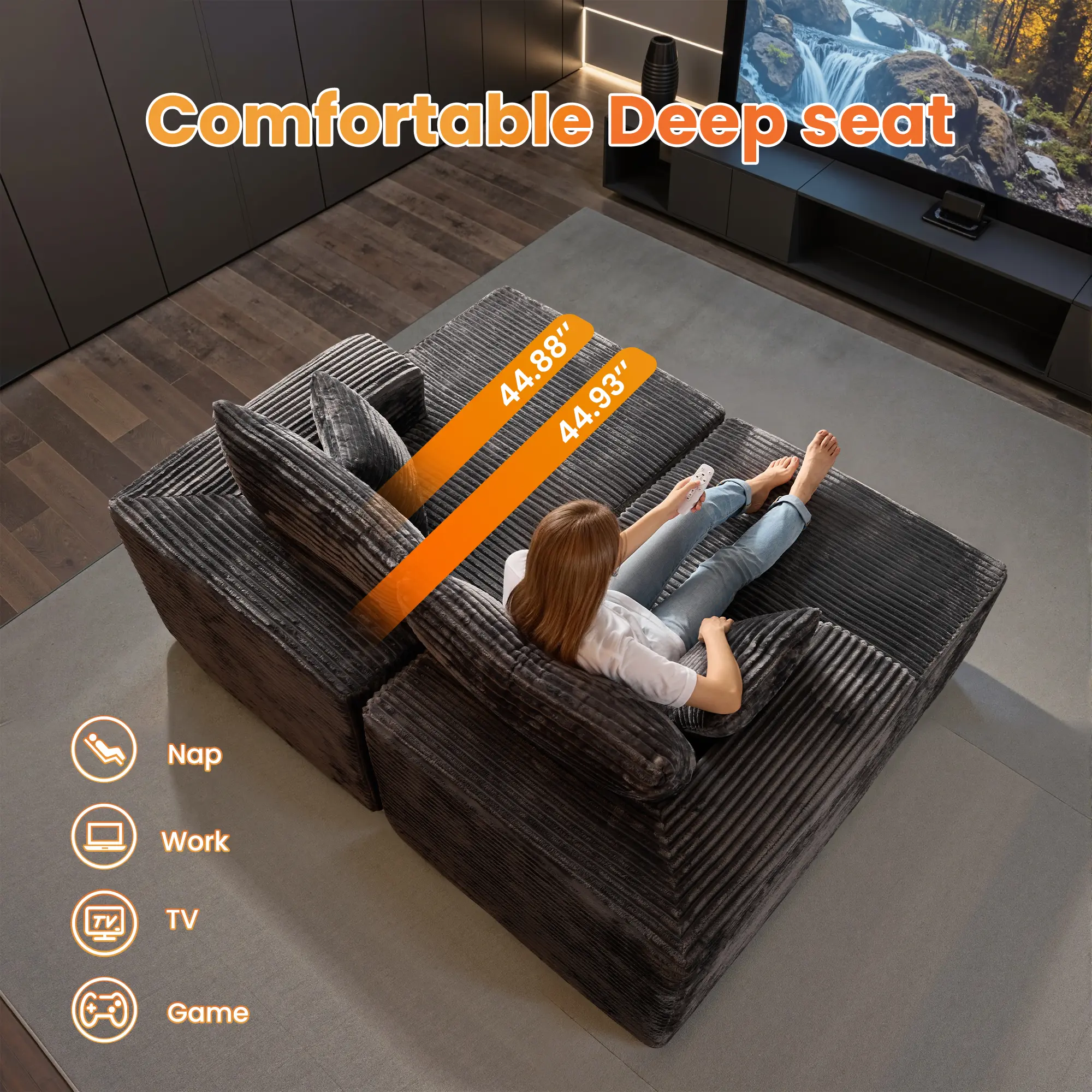 Enjoy the softness of our corduroy fabric. Its unique texture and soft sheen provide constant comfort and a touch of luxury, making it perfect for any season.