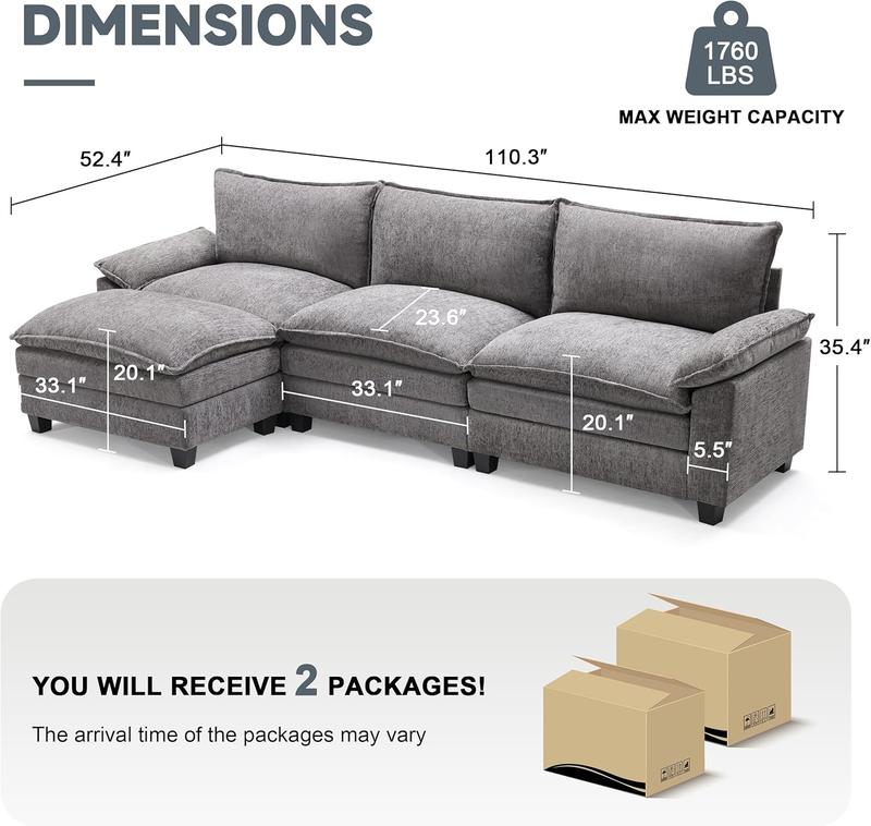 RUN!!! If I could give 0 starts I would! This couch is like a temu couch, so poorly made and the size is actually a joke. I thought it would be more cloud like but it’s just cushions filled with cotton balls. I put one piece together and said absolutely not and now they are trying to not refund me