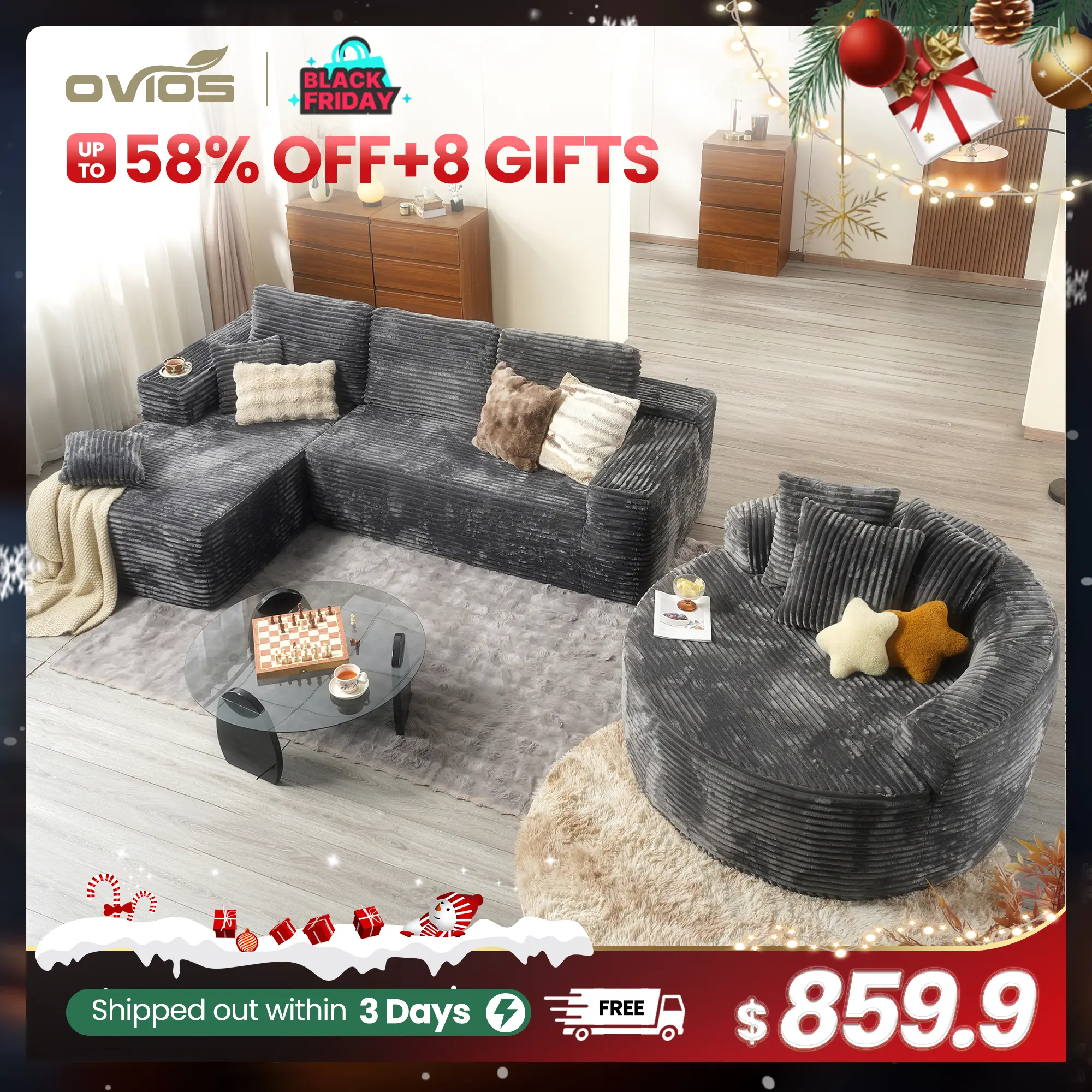 ·No Assembly Required: Unbox and enjoy your new living room set with zero hassle. Simply fluff up the sofa and chaise by giving them a good pat to restore their shape and puffiness.
