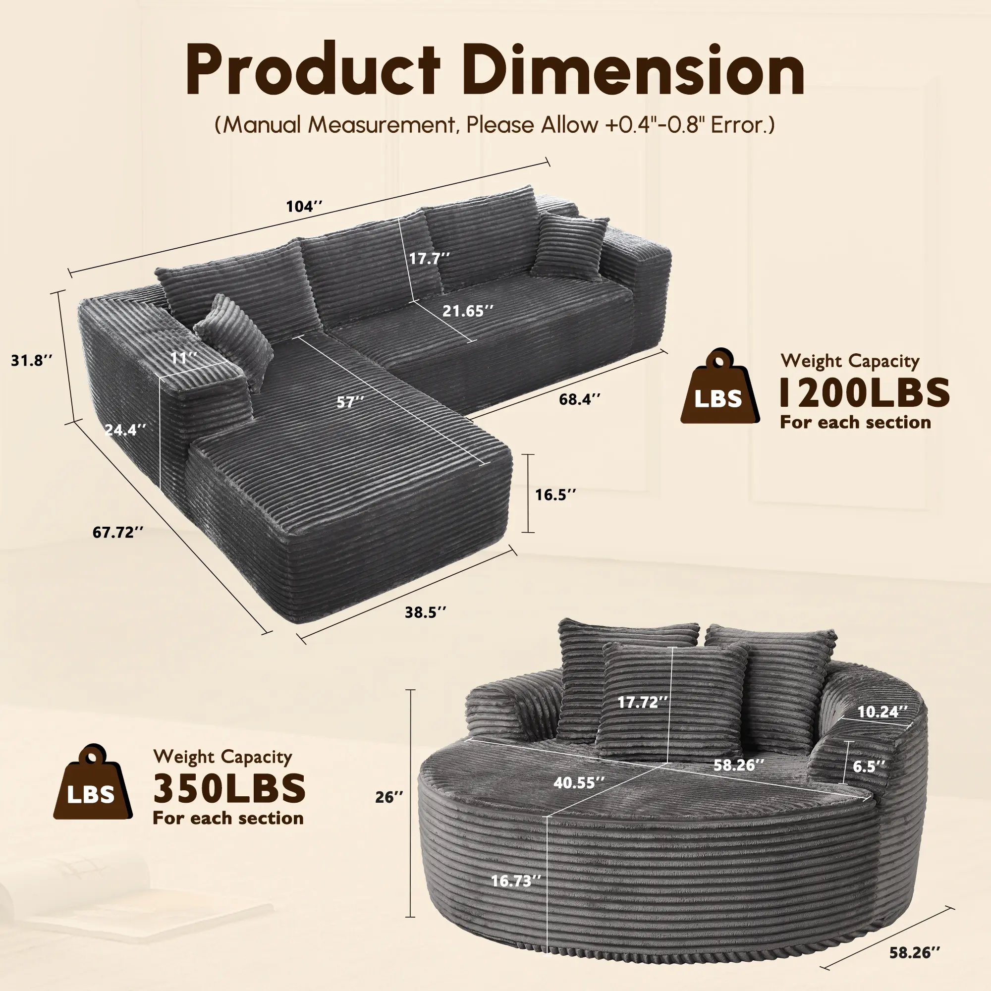 ·Plush Corduroy Fabric: Indulge in our premium corduroy fabric, as soft as silk under your fingertips. This subtly opulent material balances softness and warmth, elevating your living room’s tactile experience with its unique texture and soft sheen, perfect for any season.