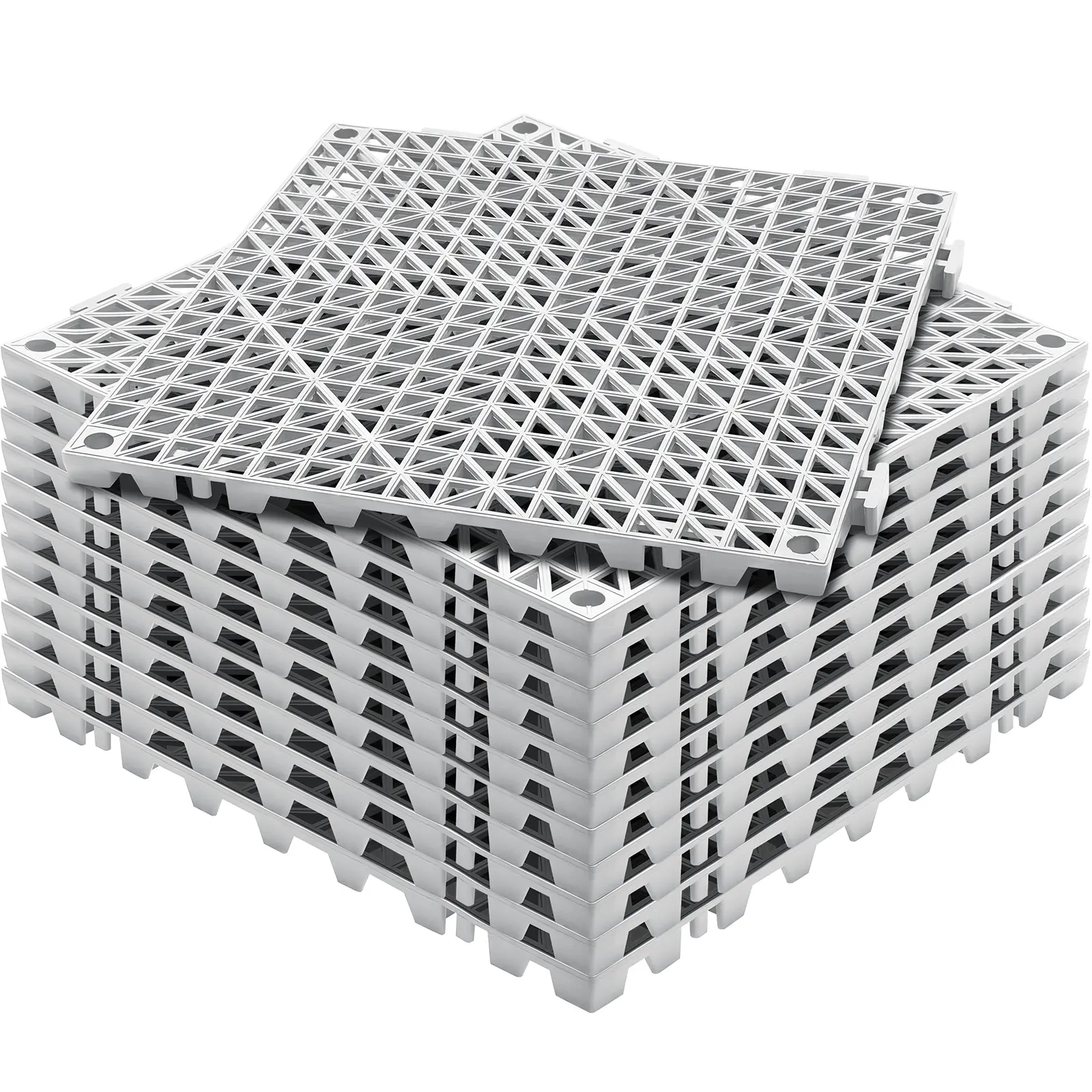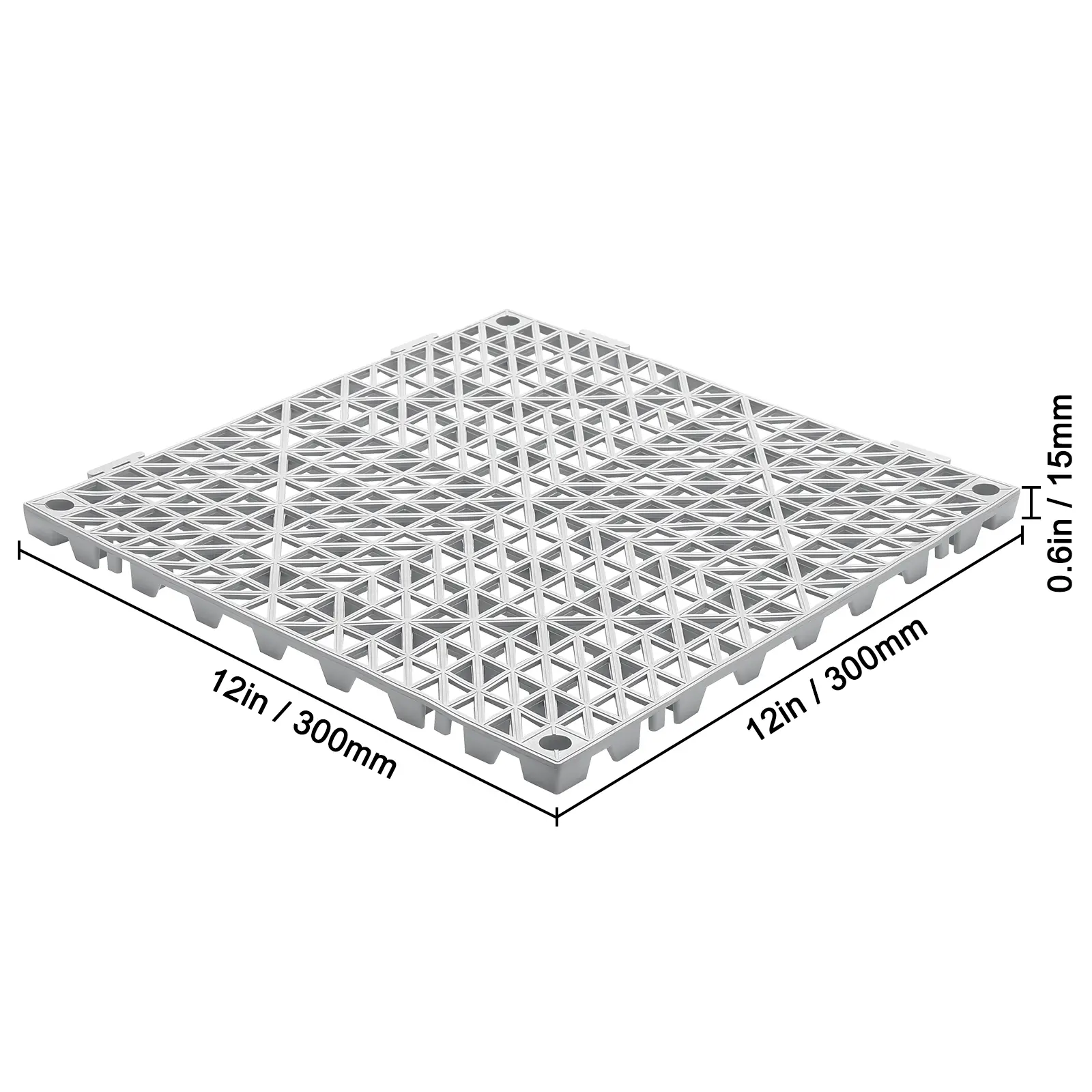 • Efficient Drainage: Our 12 interlocking drainage mats, each measuring 12x12 inches, feature upgraded 0.6-inch (15 mm) support pins to ensure rapid water drainage. Say goodbye to bothersome surface water buildup and enjoy a fresher, odor-free environment. These waterproof drainage floor tiles provide a non-slip surface for added safety.