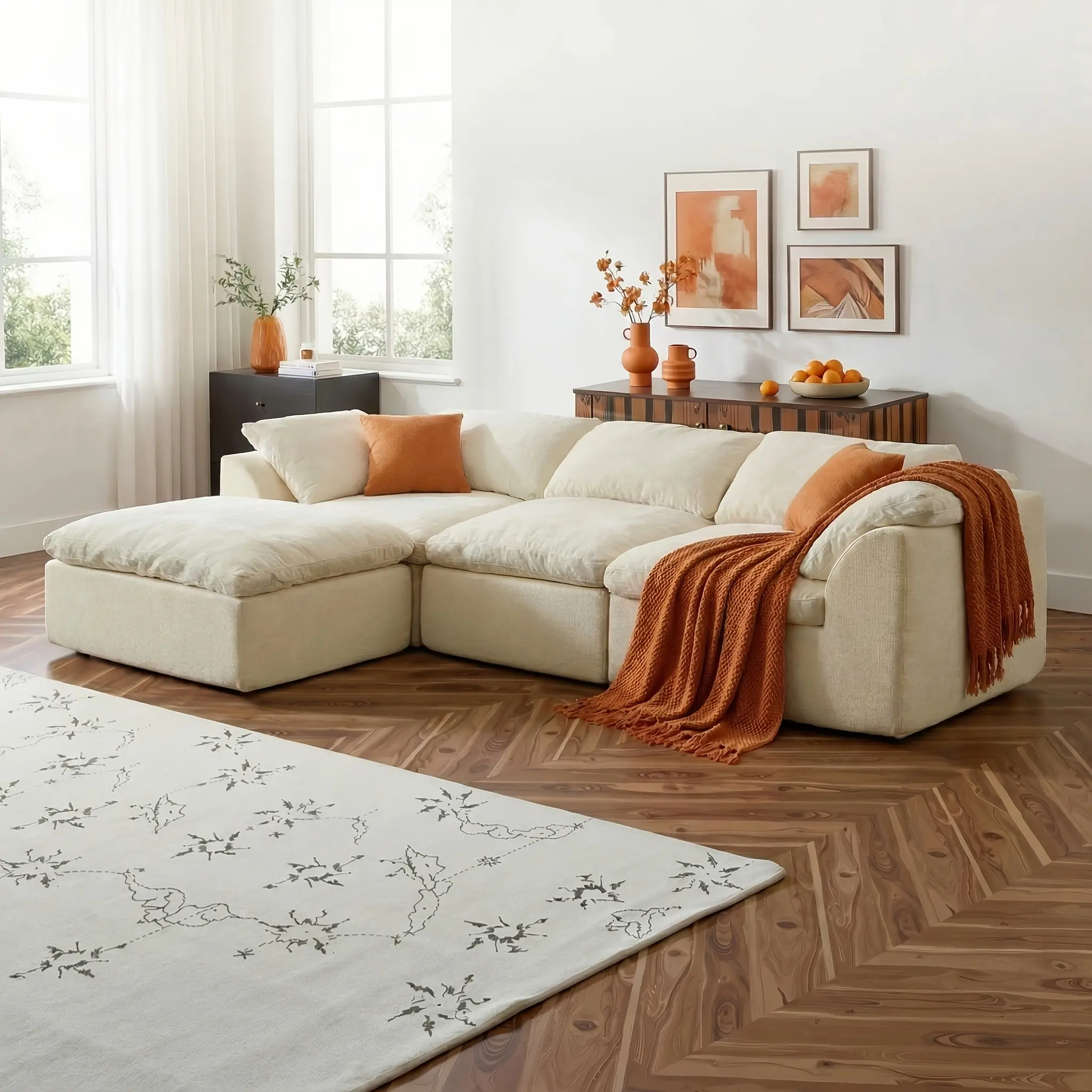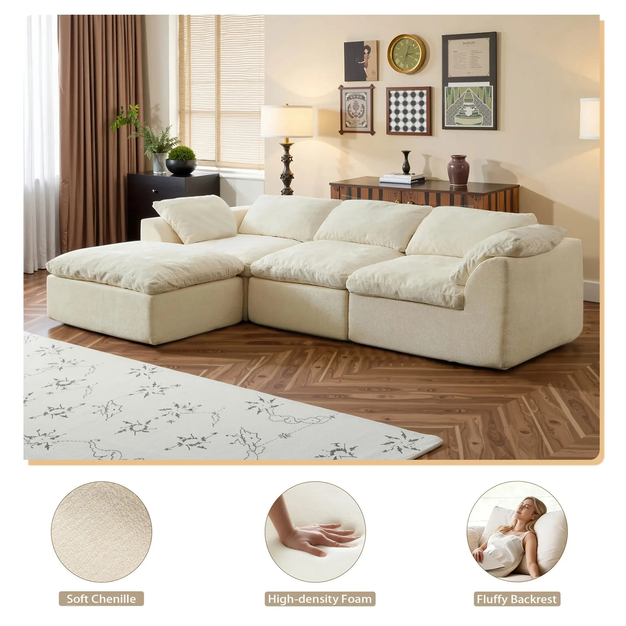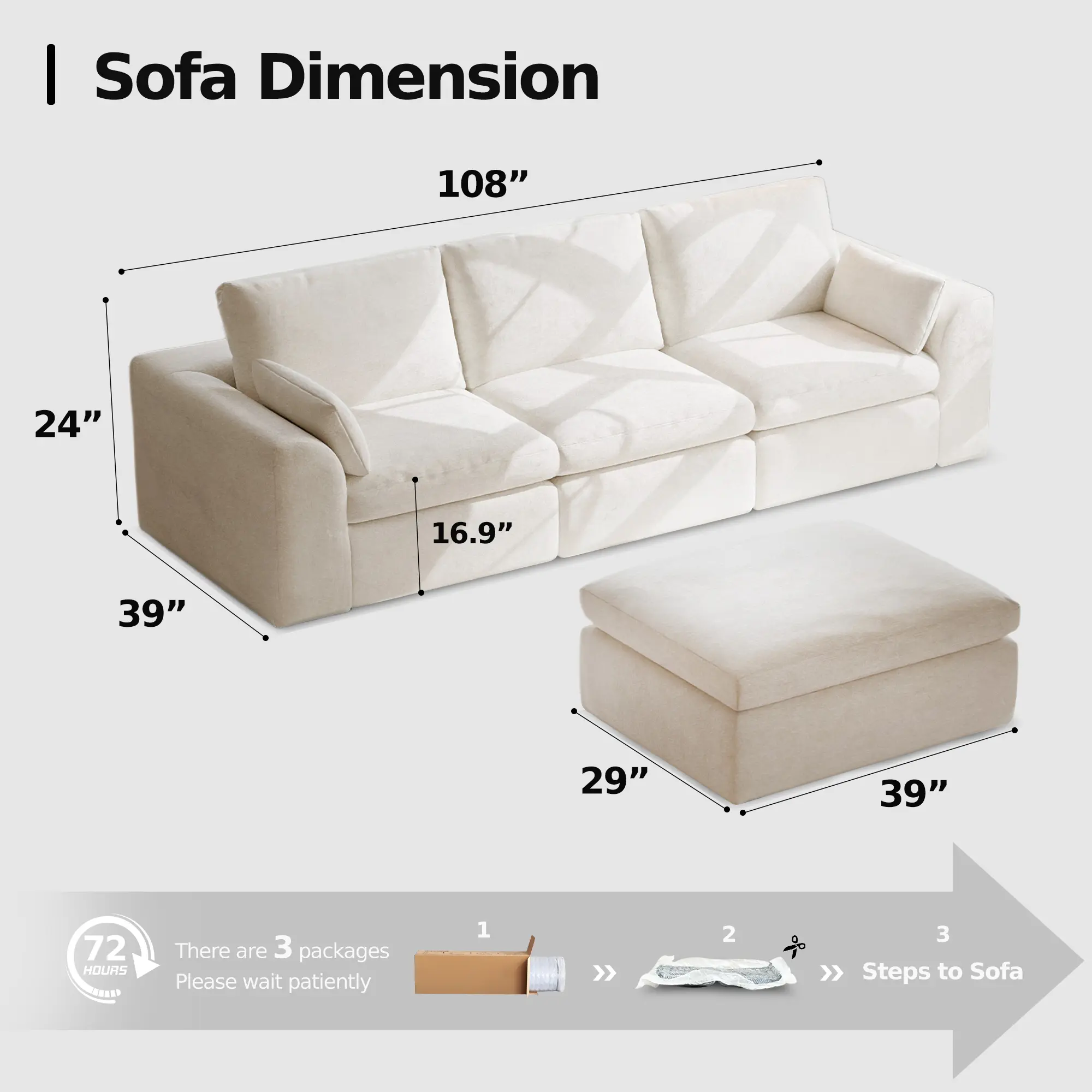 【1/2 Packages】108"Cloud Couches for Living Room, Boneless Couch L-Shape Comfy Sofa Modern Modular Sectional Sofa with Ottoman, Compressed Sofa, Cloud-Like Comfort, Flexible Modular, No Assembly Needed