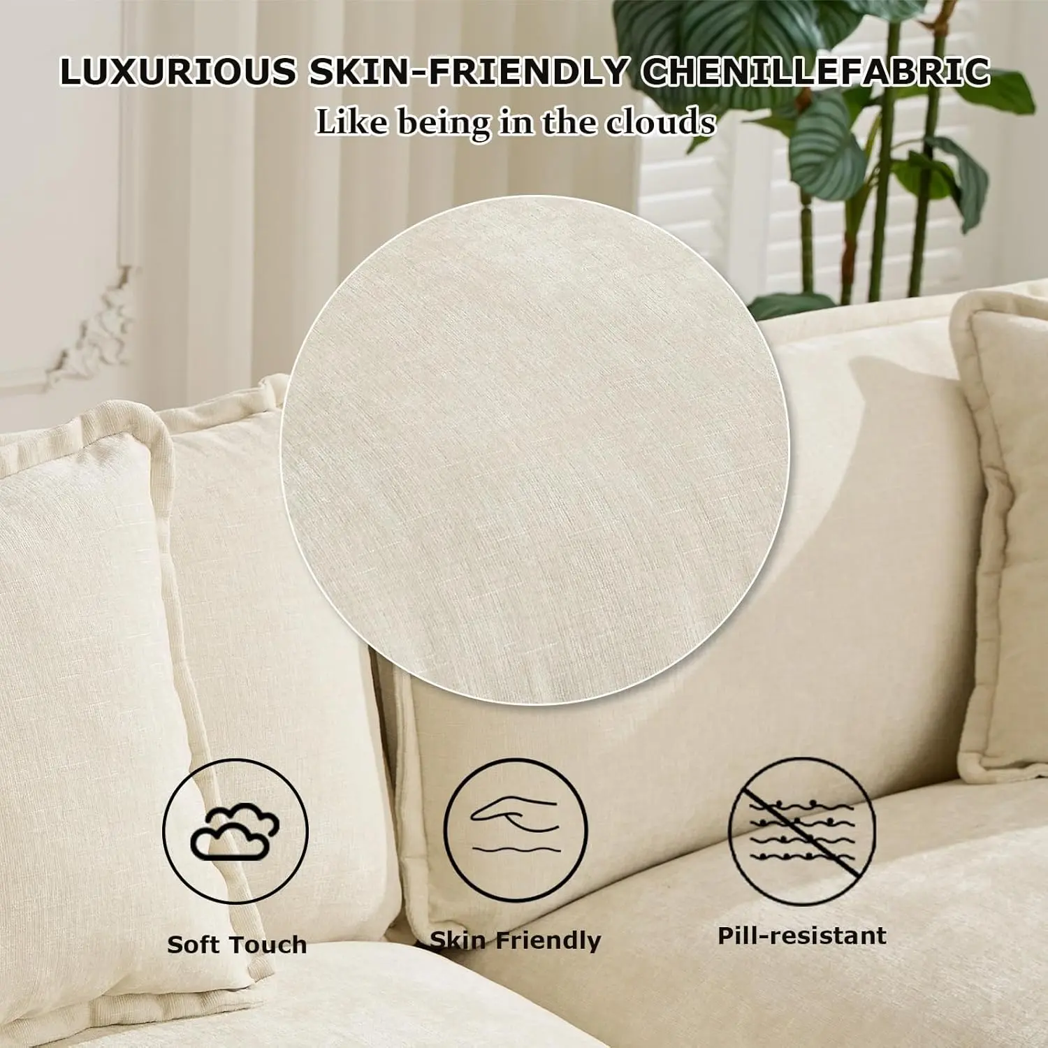·Premium Chenille: These sectional couches are crafted with premium chenille fabric, renowned for its incredibly soft texture, subtle sheen, and luxurious feel. The sofa couch’s color perfectly complements its modern design, creating an elegant and cozy atmosphere. This modular sectional is the perfect choice for adding both sophistication and comfort to any space.