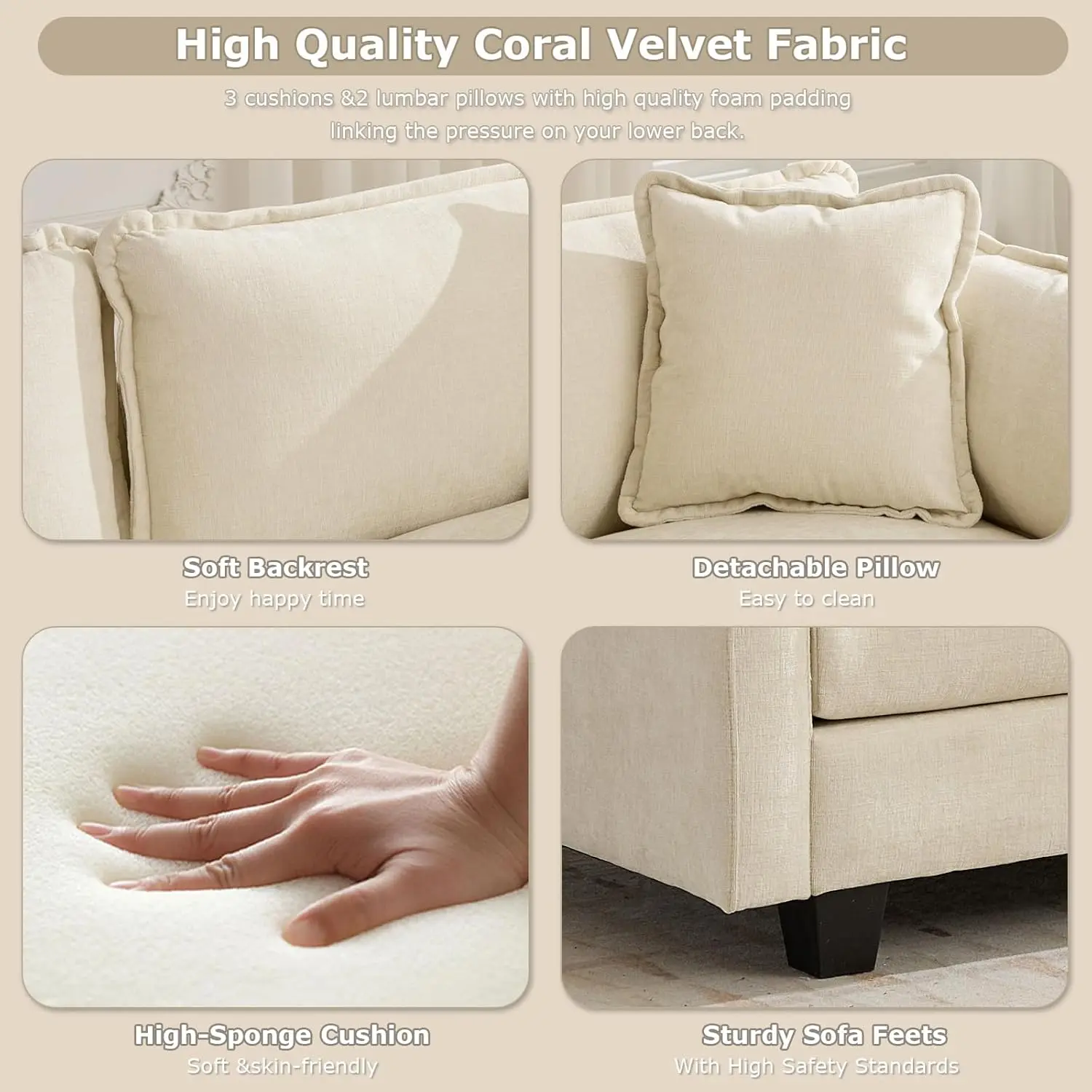 ·Comfy Cloud Sofa: The fluffy sofa features an extra-wide and 25.2-inch deep seating surface that provides a spacious lounging area, along with matching pillows and arm cushions. The living room sofa features dual layers of padded upholstery with high-density foam padding and a spring system that creates a cloud-like softness while providing unparalleled support that prevents caving in over time.