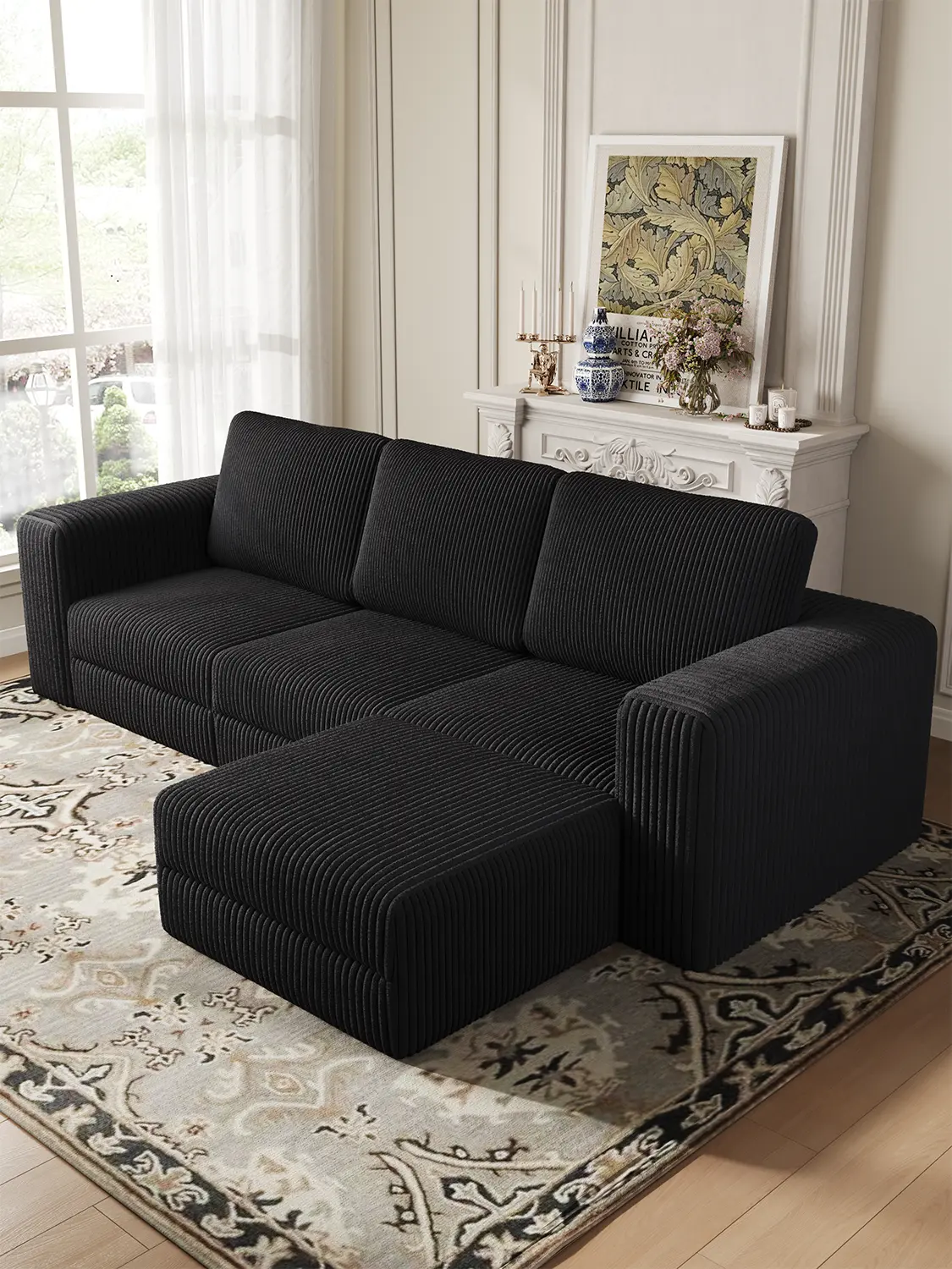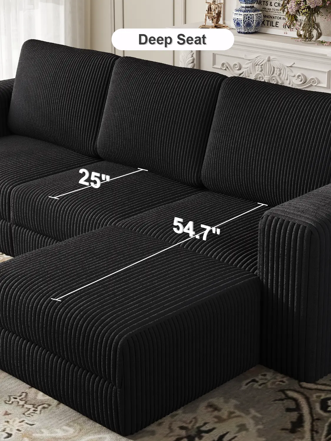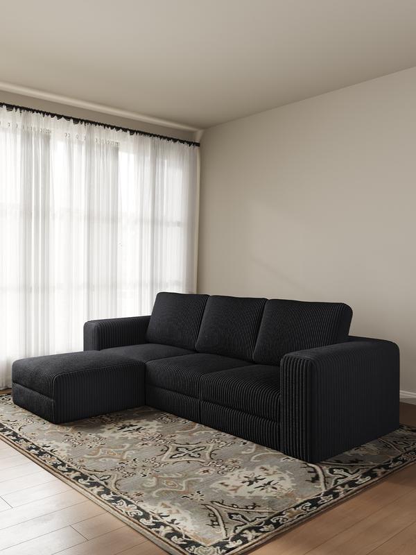 ·【Modern Design】 Upgrade your living room with a plush corduroy sectional sofa. Its sleek, timeless design features clean lines and striped accents that add a refined touch to any decor.