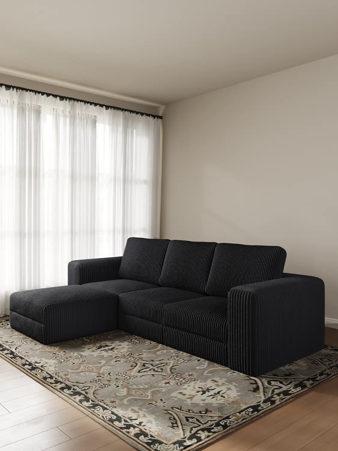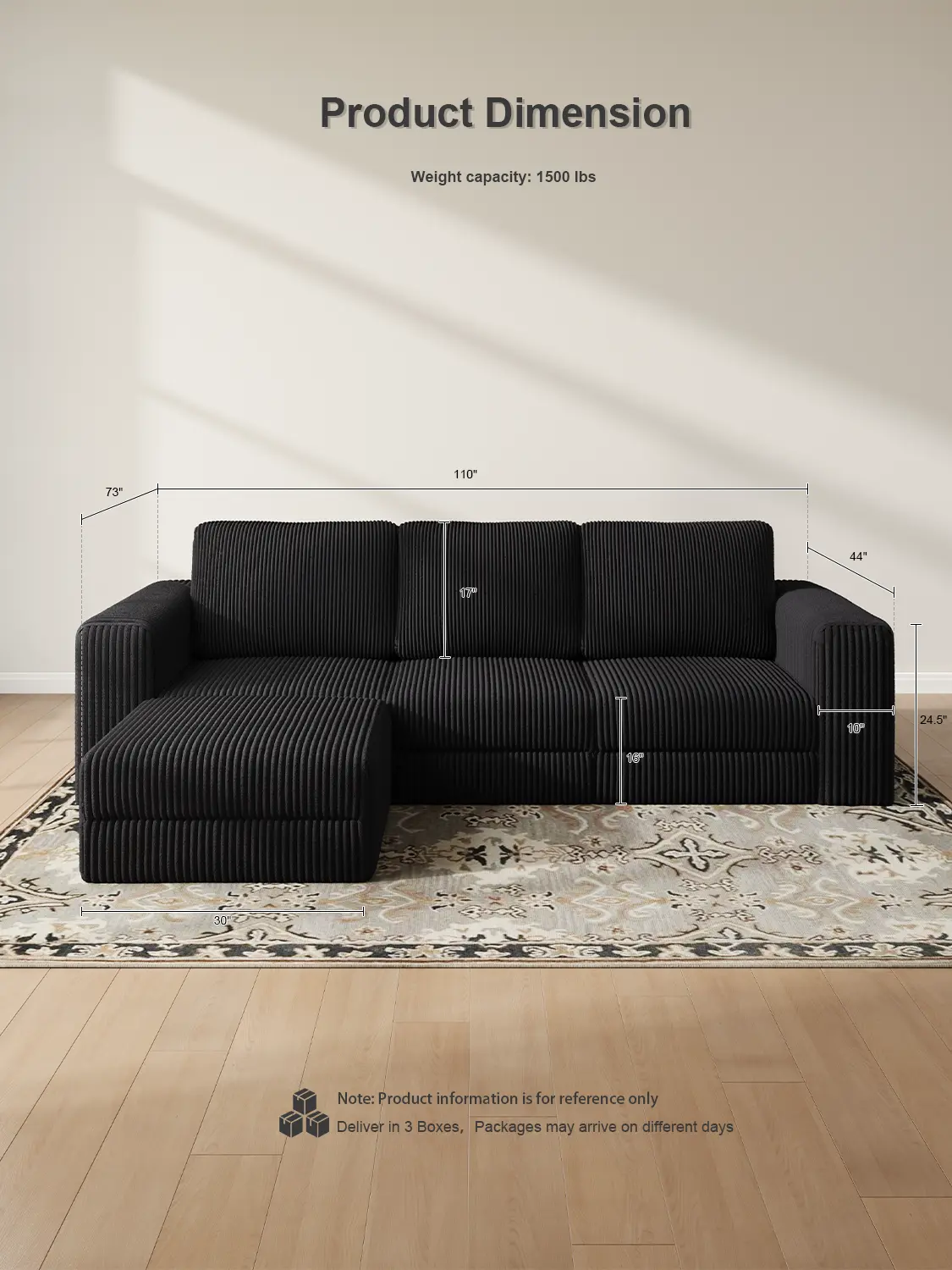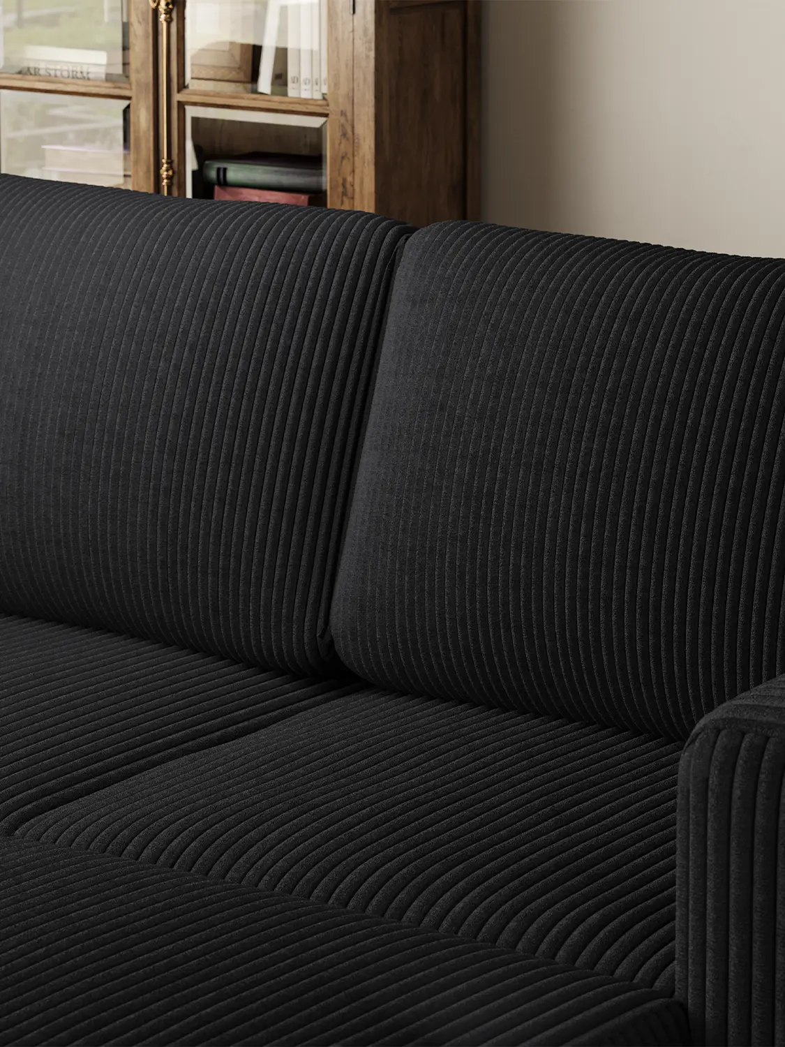 ·【Modern Design】 Upgrade your living room with a plush corduroy sectional sofa. Its sleek, timeless design features clean lines and striped accents that add a refined touch to any decor.