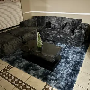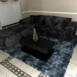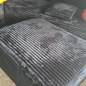 Black Plush Corduroy Left Chaise, Without Ottoman