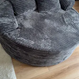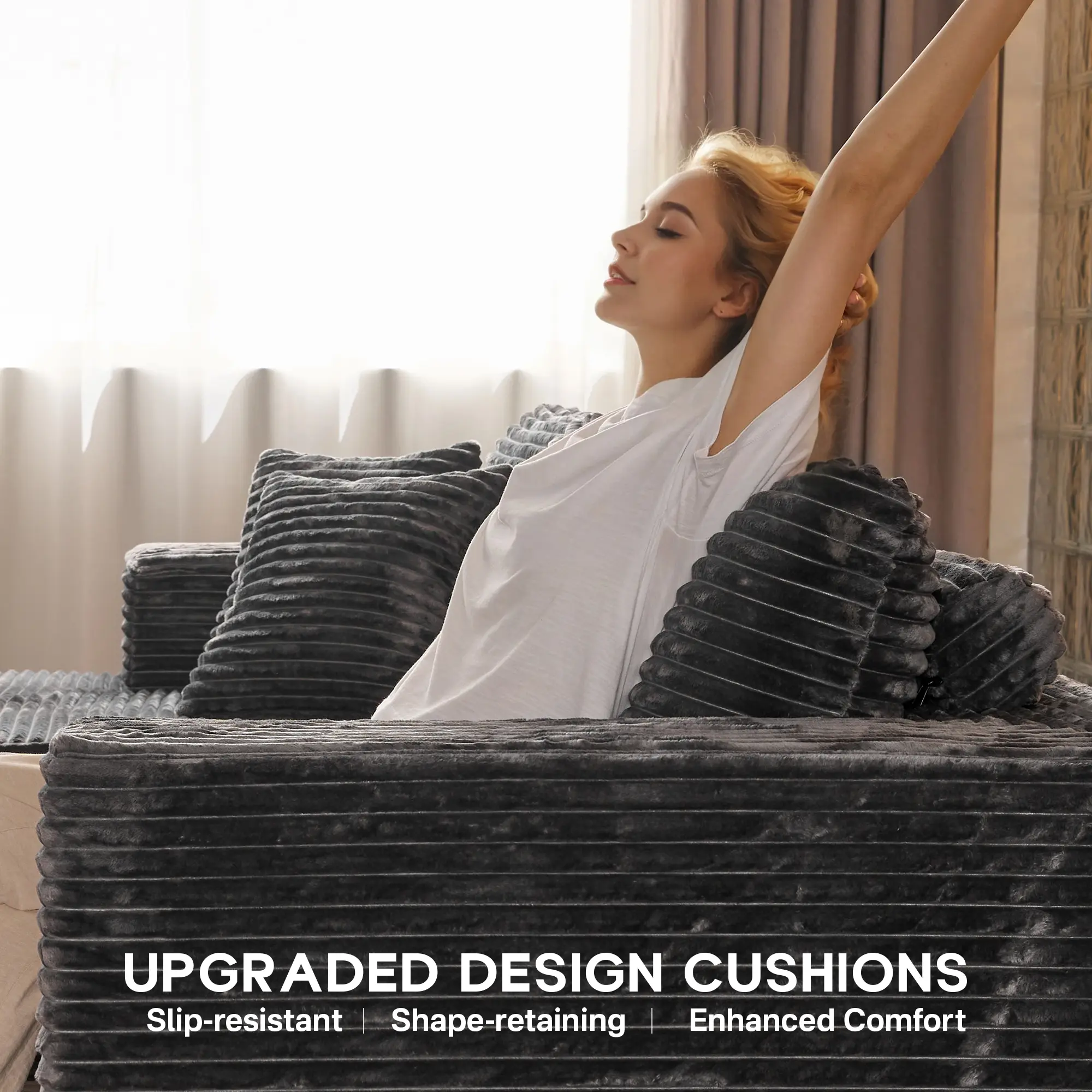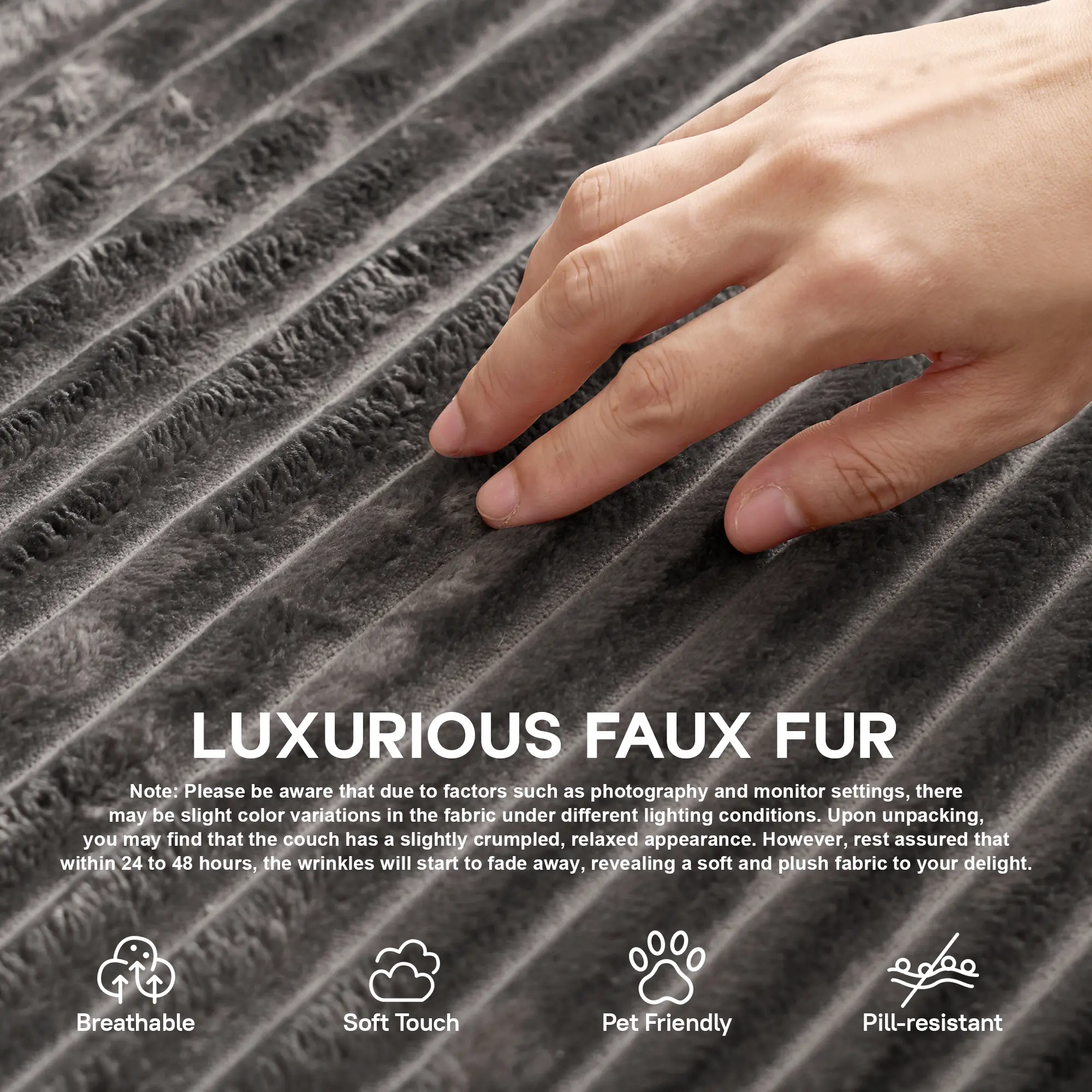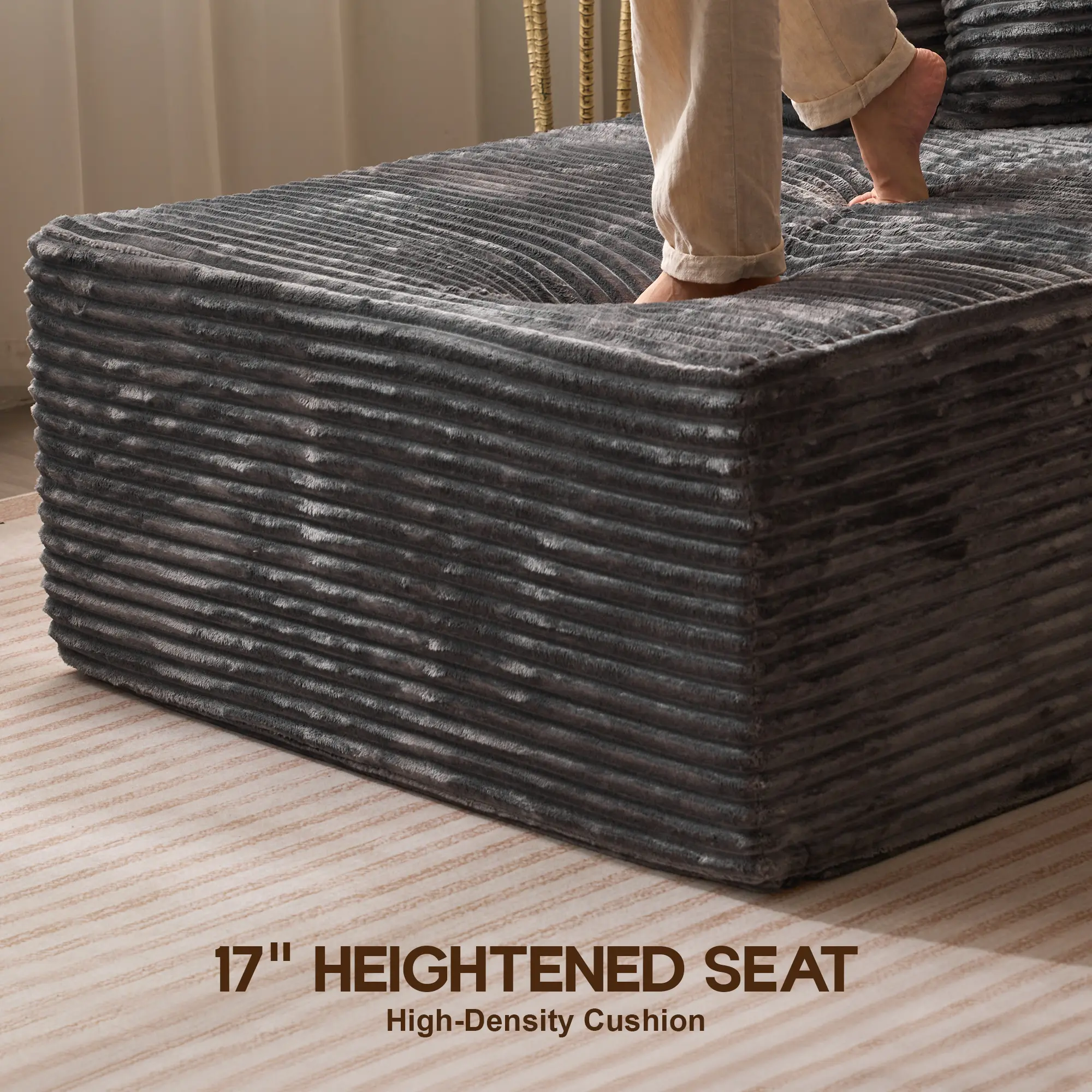 Grey Plush Corduroy Right Chaise, With Ottoman