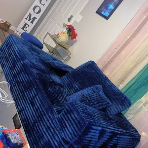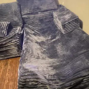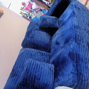 Blue Plush Corduroy Left Chaise, Without Ottoman