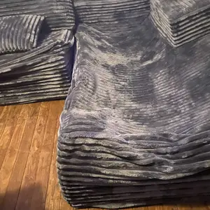 Grey Plush Corduroy Left Chaise, With Ottoman