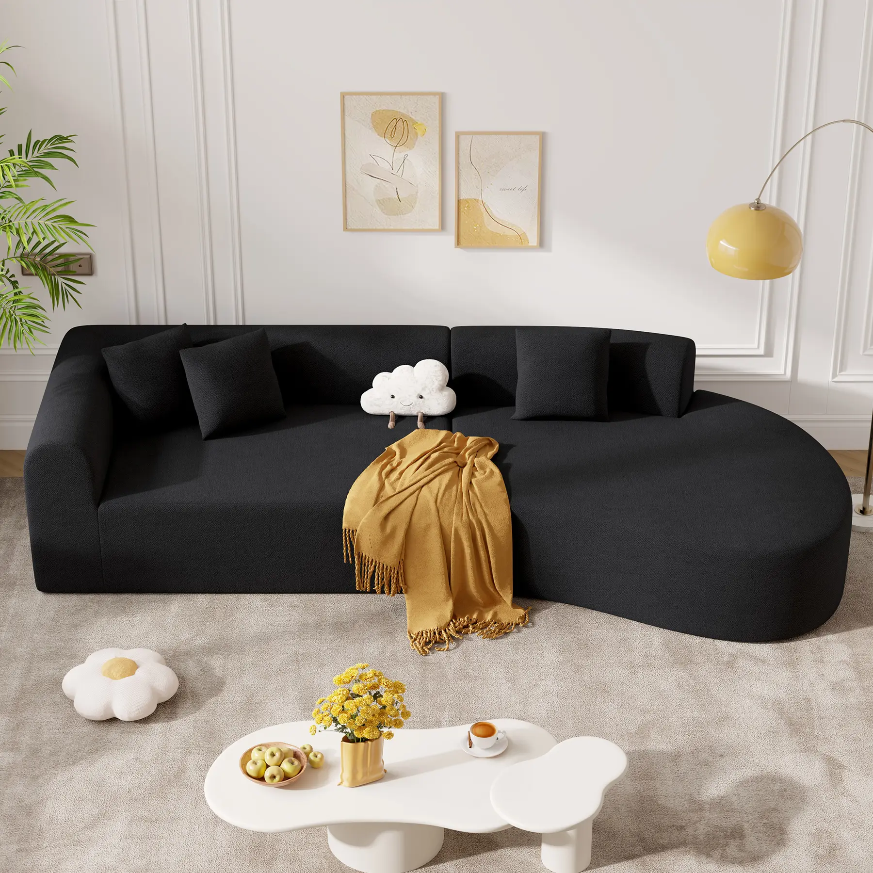 ·【Modern Curved Sofa】 Our sleek modular sectional sofa featuring a distinctive contemporary curved silhouette, adding a touch of artistry to your living space, making it an ideal addition to living rooms, offices and bedrooms.