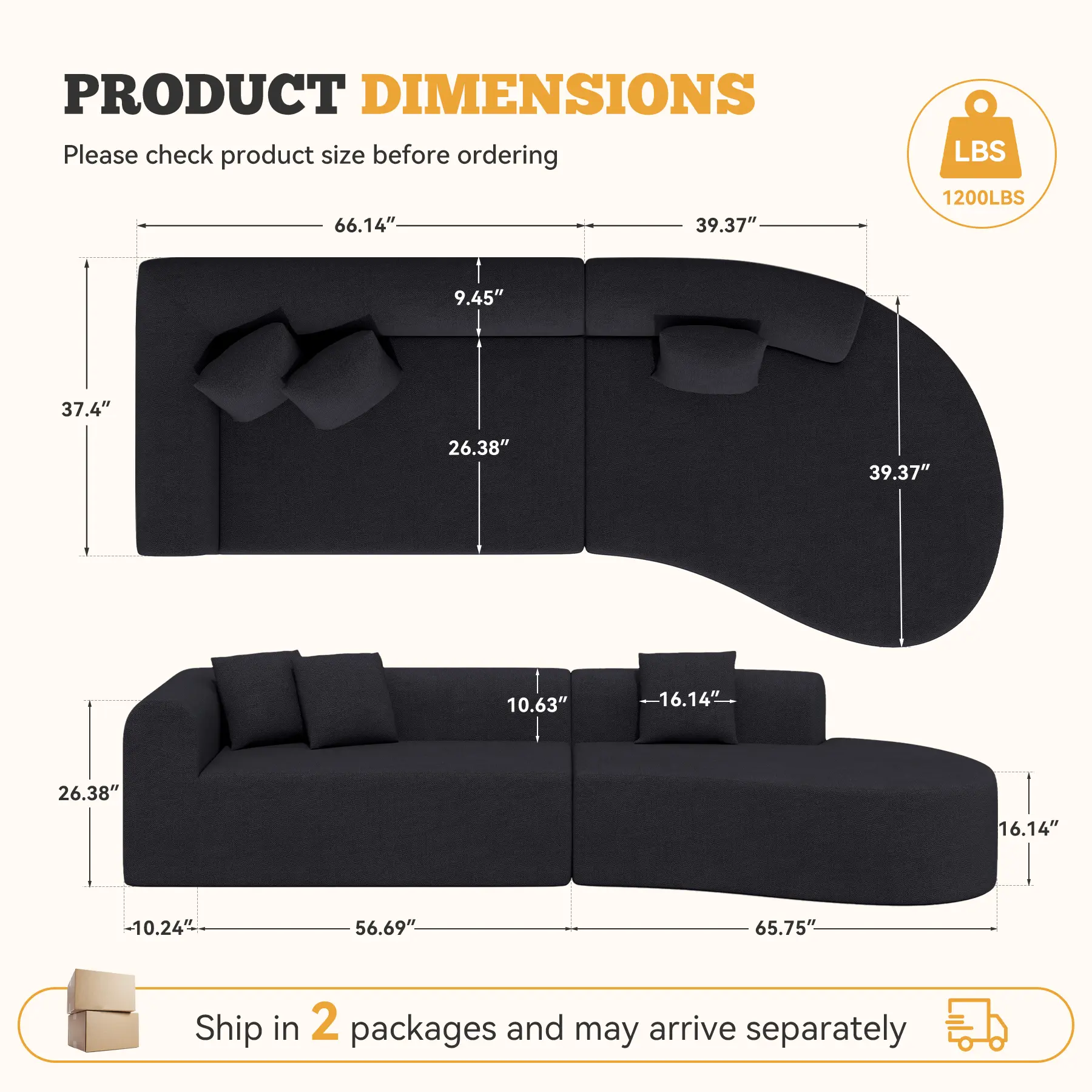 ·【Always By Your Side】 Luxanimarion sectional curved couch will come in 2 boxes and they may not arrive at the same time. If you have any problems about the living room sofa couch, please don't hesitate to contact us, we will give you the most professional guidance and provide you with the best shopping experience.