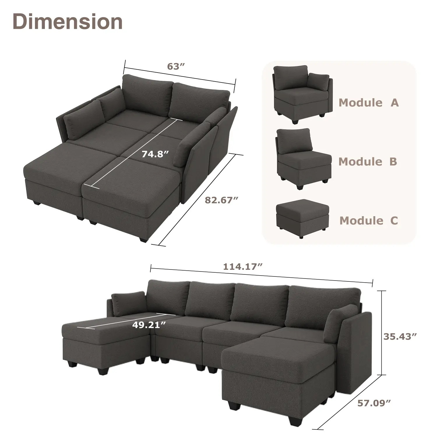 ·Multiple Packages: Please note that the modular couch packages may arrive separately. If you have any questions about the tracking numbers or the status of your modern convertible sofa, feel free to contact us for help