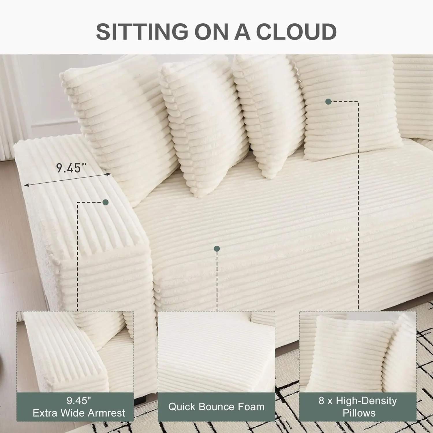·Quilted Corduroy: Durable and pet-friendly fabric resists scratches and is easy to clean. 🐾