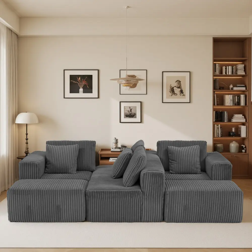 【Spacious Wale Corduroy Sofa】Transform your space with our contemporary modular U-shaped sofa, crafted with luxurious striped fabric. Its elegant design and crisp silhouette bring a sophisticated, timeless charm to any room, instantly becoming the centerpiece of your decor. Perfect for living rooms, apartments, or bedrooms, this stylish couch combines comfort and modern aesthetics for a refined home upgrade.