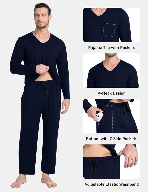 ·【Pajama Pants】-pajama pants come with 2 side pockets which are convenient to keep your cell phone, keys, cards, and other belongings safe and keep your hands warm. men's pajama sets long sleeve features an elastic waistband with an adjustable drawstring for the perfect fit.