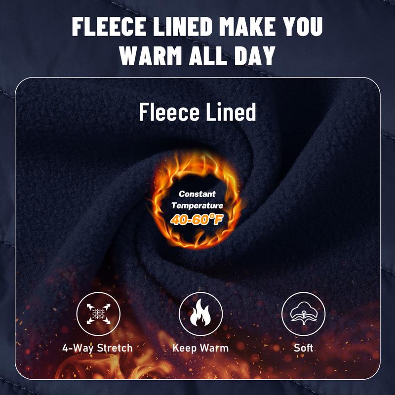 ·Multi-Fabric Construction: This outerwear vests features a combination of knit and woven fabrics, with woven panels on the front and back and knit on the sides and sleeves. This design not only enhances flexibility but also provides wind proofing to keep you warm in outdoor activities.