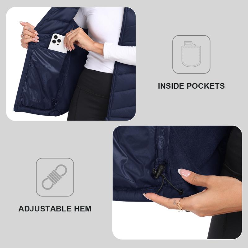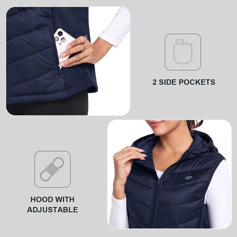 MoFiz Women's Puffer Vest Lightweight Hooded Warm Fleece Lined Hybrid Softshell Hiking Winter Sleeveless Zip Vest