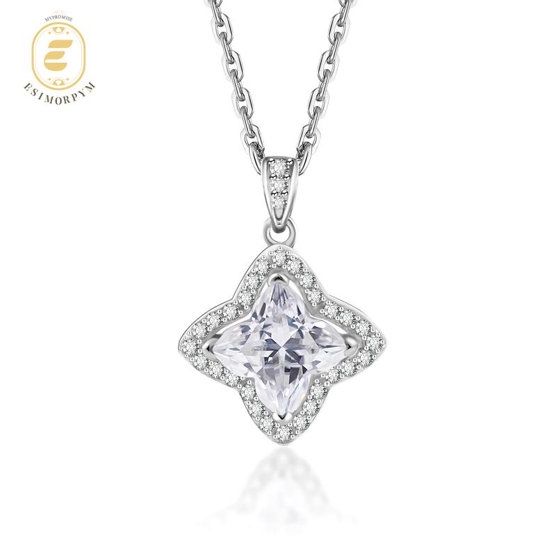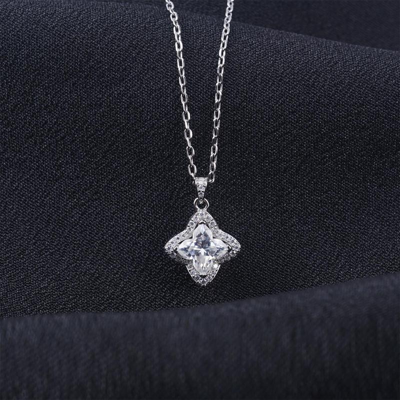 Celebrate luck, love, and luminous beauty with this stunning 1.1ct Moissanite Pendant Necklace. Inspired by the elegance of a lily blossom and the charm of a four-leaf clover, this exquisite design symbolizes purity, faith, and good fortune.