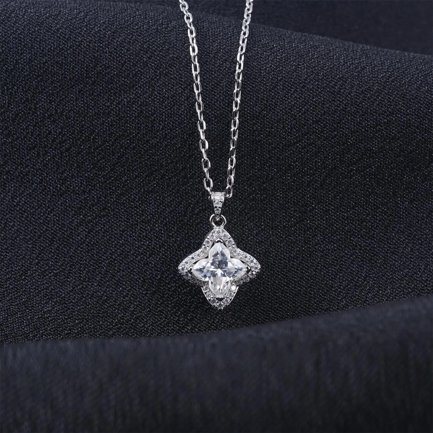 Each petal sparkles with precision-cut moissanite stones, brilliance that captures every glance. Perfect for engagements, weddings, anniversaries, or as a lucky gift to someone special, this necklace embodies both romantic grace and timeless luxury.