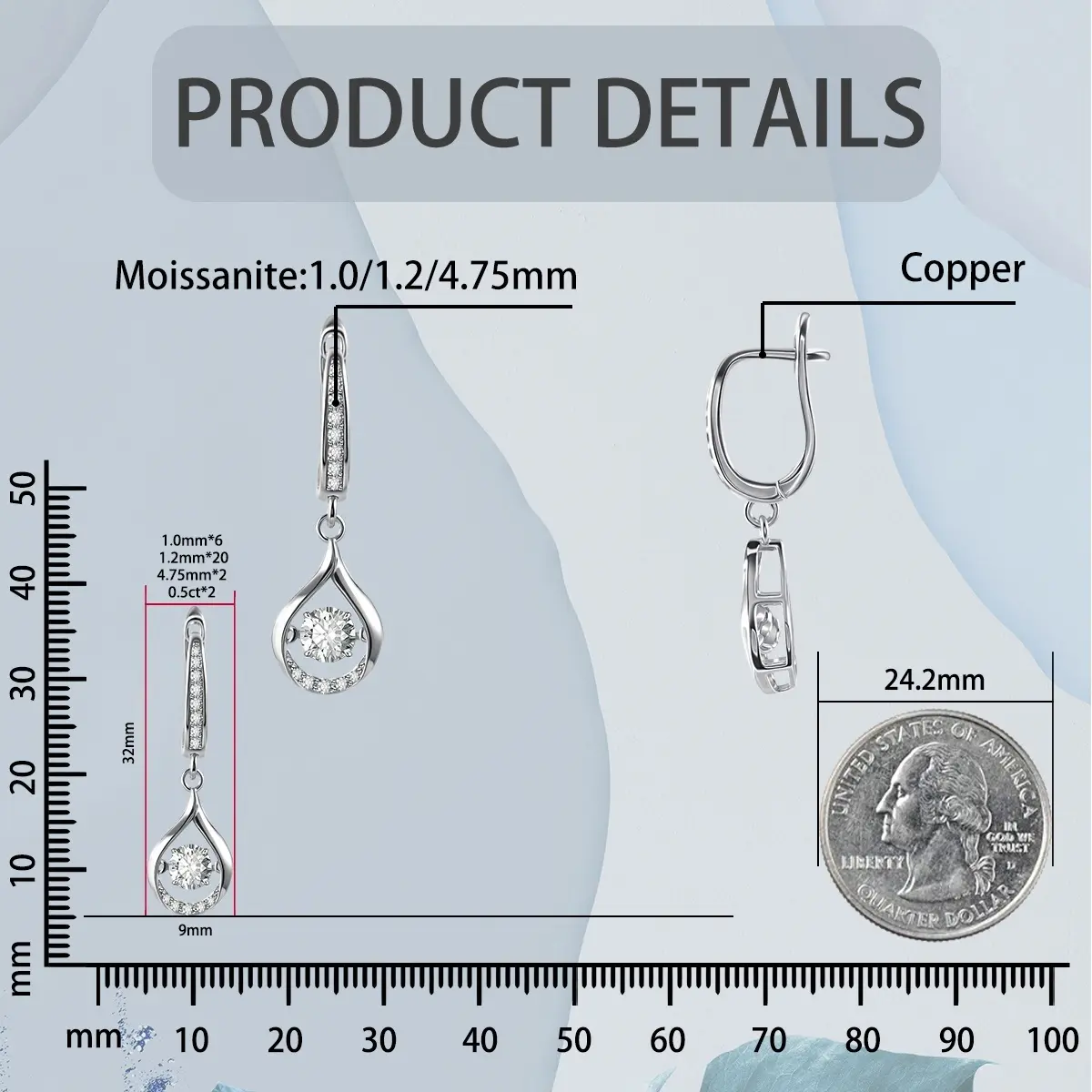 ·Metal: D Color VVS Moissanite, Copper