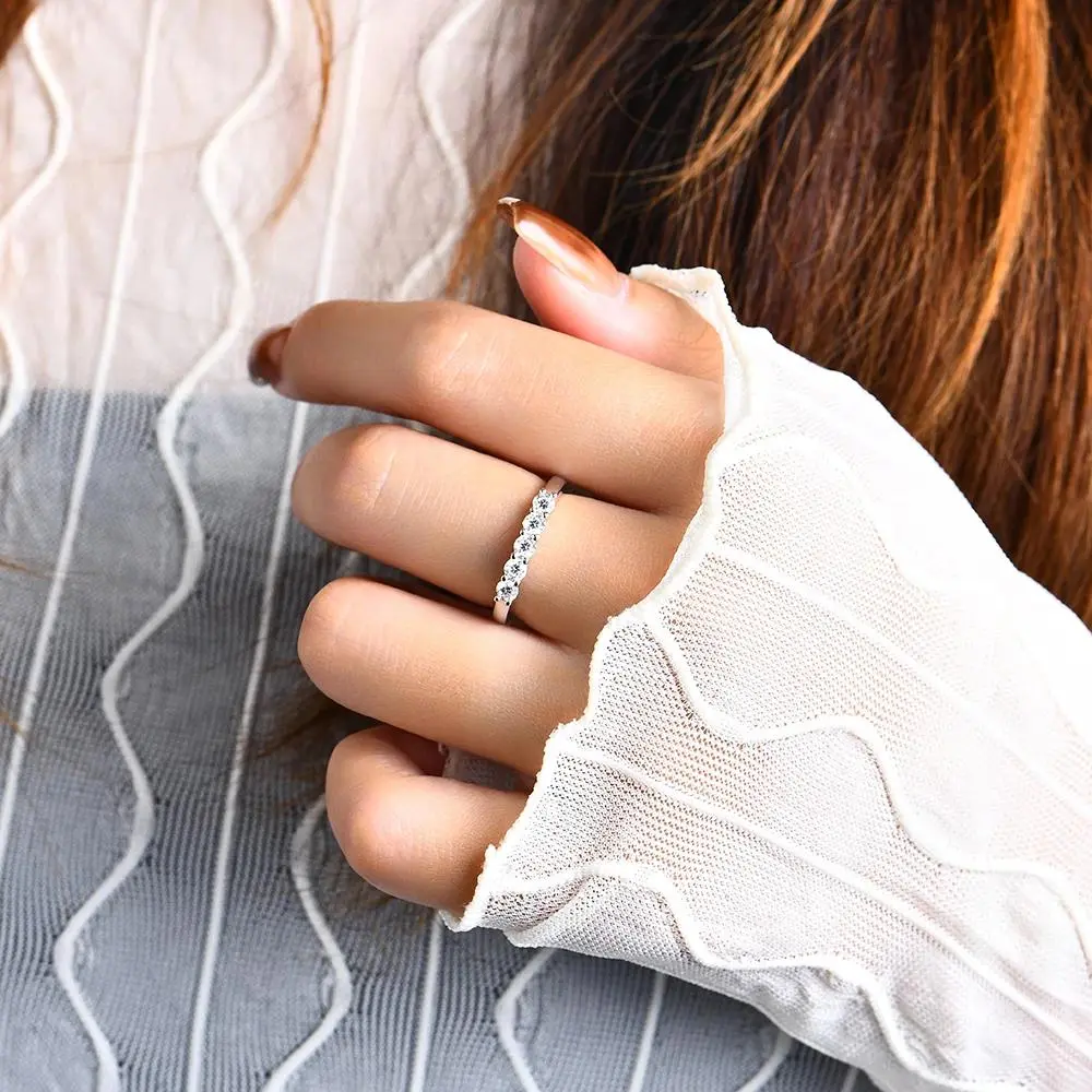 Fashion Design Laboratory Synthesized Synthetic Moissanite Ring Band for Women Daily Birthday Elegant Ring Eternity Lovely Wedding Band Jewelry Engagement Gift R264 SpringStatements