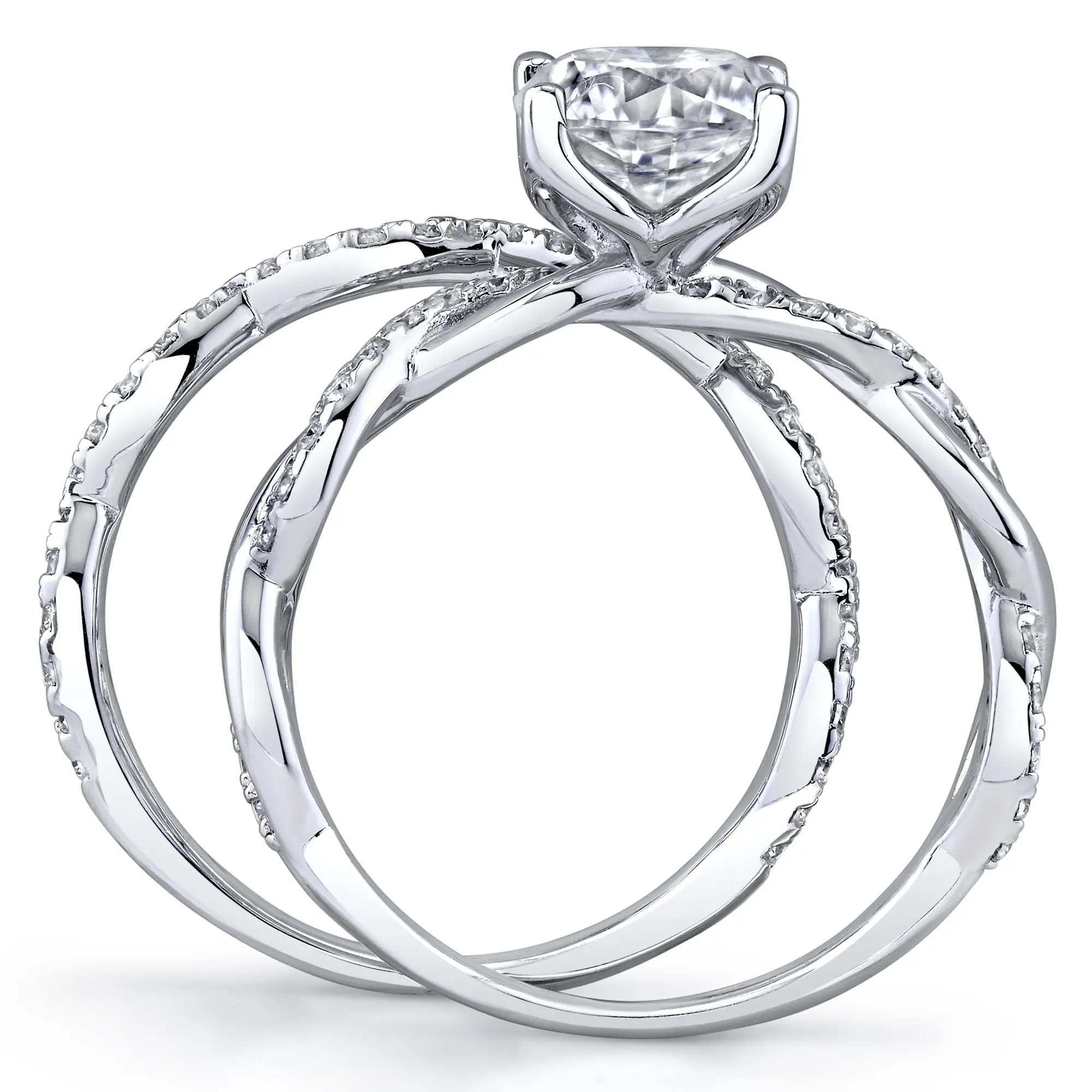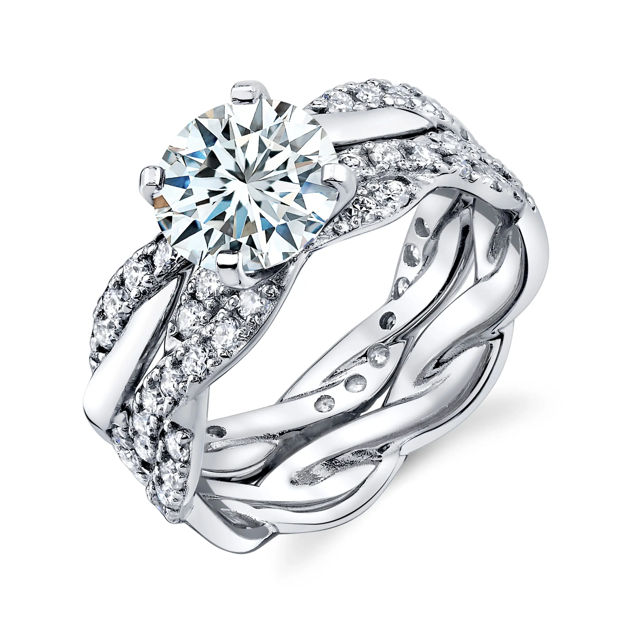 Introducing our exquisite 2.5Ct Round Moissanite 18K White Gold Over Silver Eternity Infinity Twist Bridal Set Wedding Ring, a true symbol of eternal love and luxury. Crafted with precision and passion, this dazzling bridal set boasts five key features that will leave you breathless: