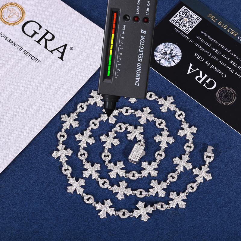 【#B187】 Shiny Synthetic Moissanite Chain Bracelet Cross Delicate Bracelet 925 Sterling Silver Men's Hip Hop Rap Party Trend