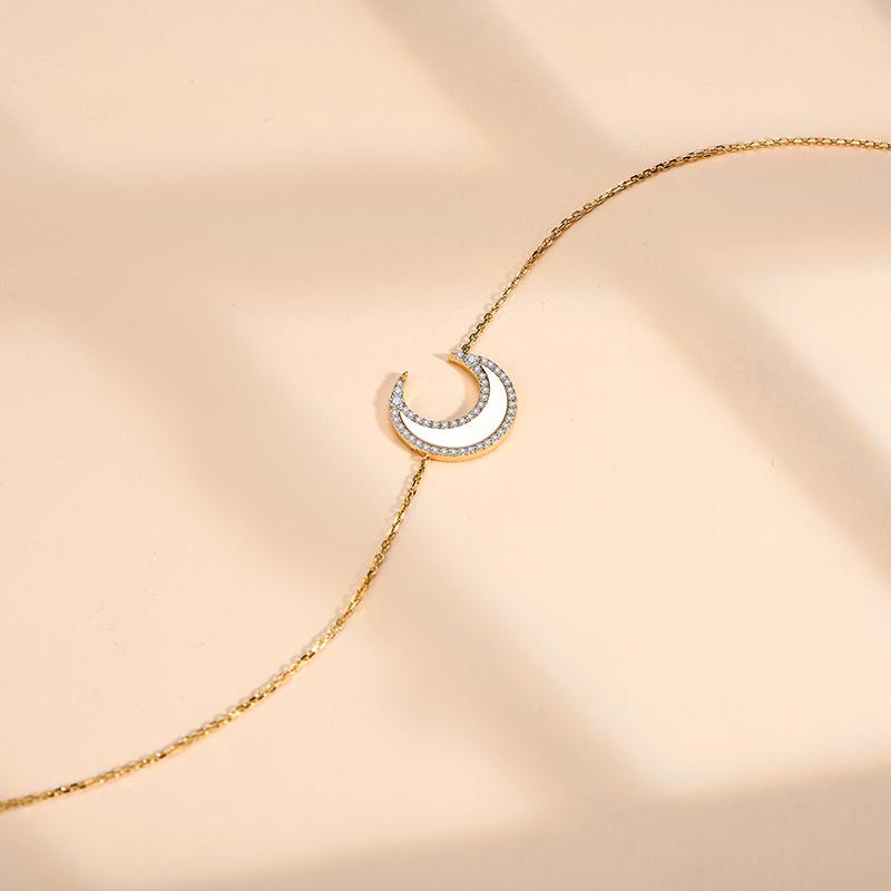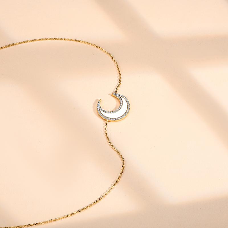 ATTAGEMS Classic D VVS1 Color Lab-Created Moissanite Crescent Moon Pendant Necklace for Women Men Unisex Daily Wear Sterling Silver Engagement Anniversary Birthday Travel Wedding Party Gift N050