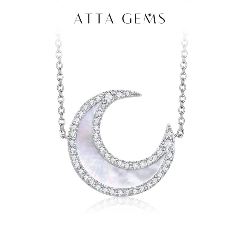 5. ATTAGEMS Classic D VVS1 Color Lab-Created Moissanite Crescent Moon Pendant Necklace for Women Men Unisex Daily Wear Sterling Silver Engagement Anniversary Birthday Travel Wedding Party Gift N050