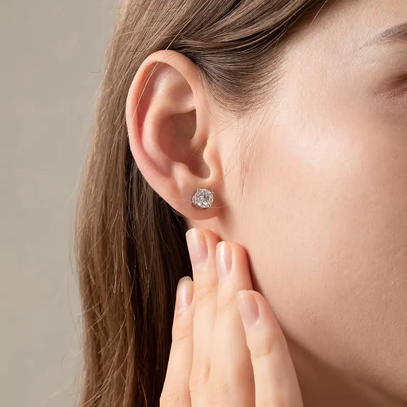 The earrings showcase a 3.0MM diameter, offering a noticeable yet elegant look. The D color indicates a high level of purity and clarity. Crafted with precision, these earrings are a testament to modern jewelry design.