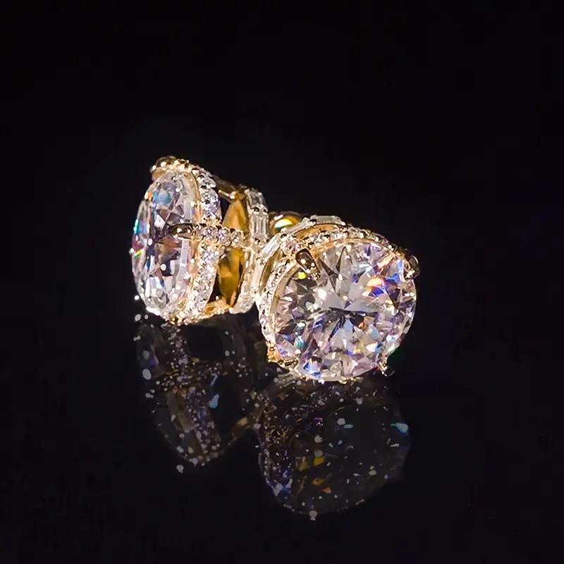 These VVS Moissanite Round & Baguette Cut Full Paved Earrings from HELLOICE are a stunning choice for those seeking luxury, brilliance, and durability.