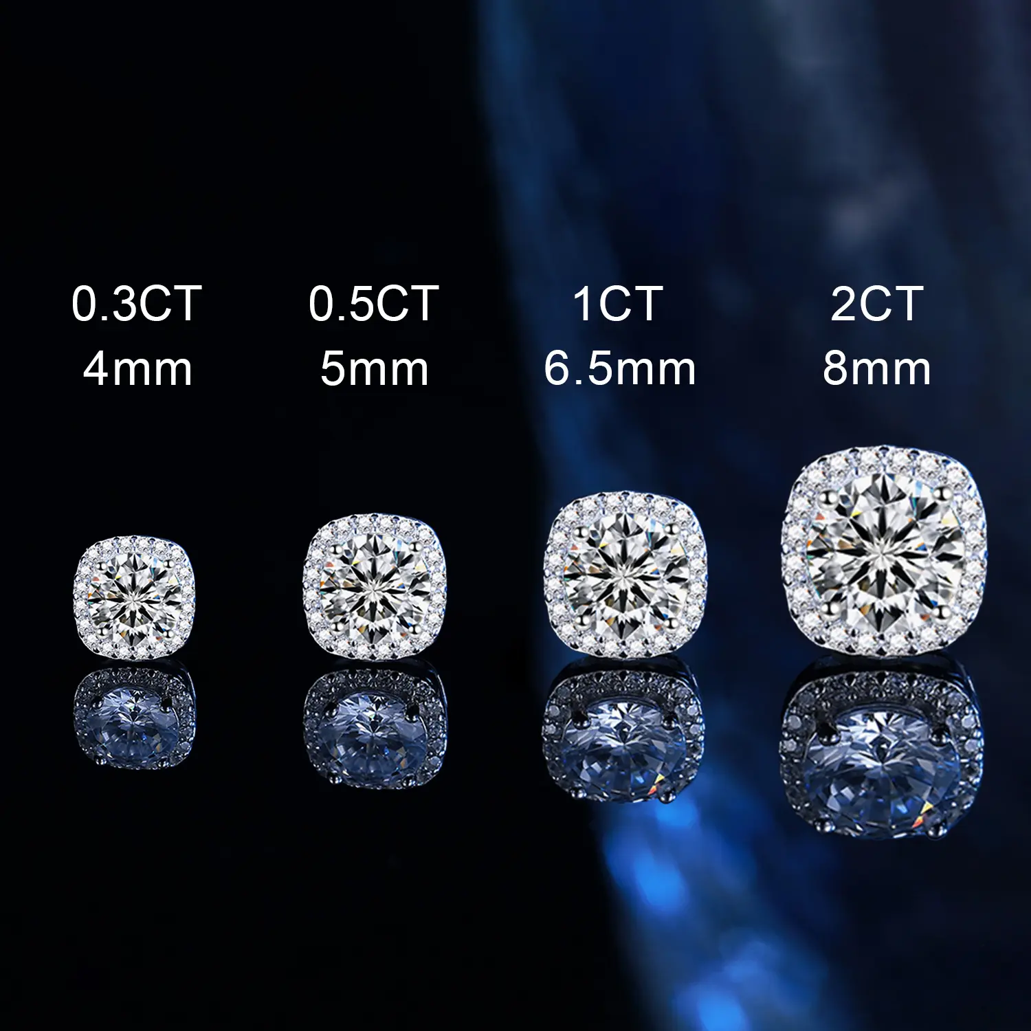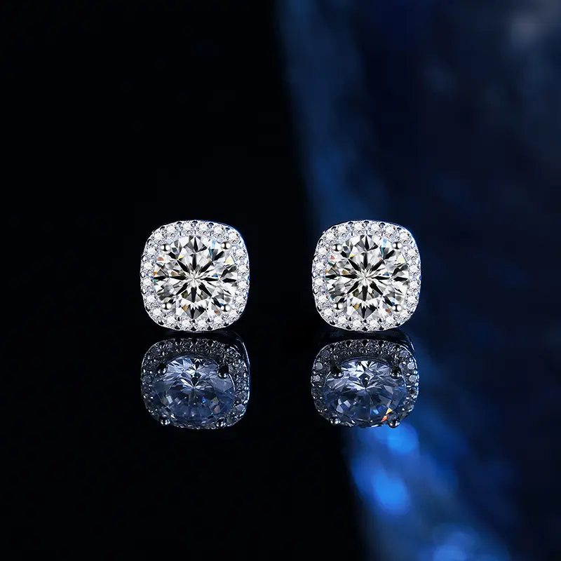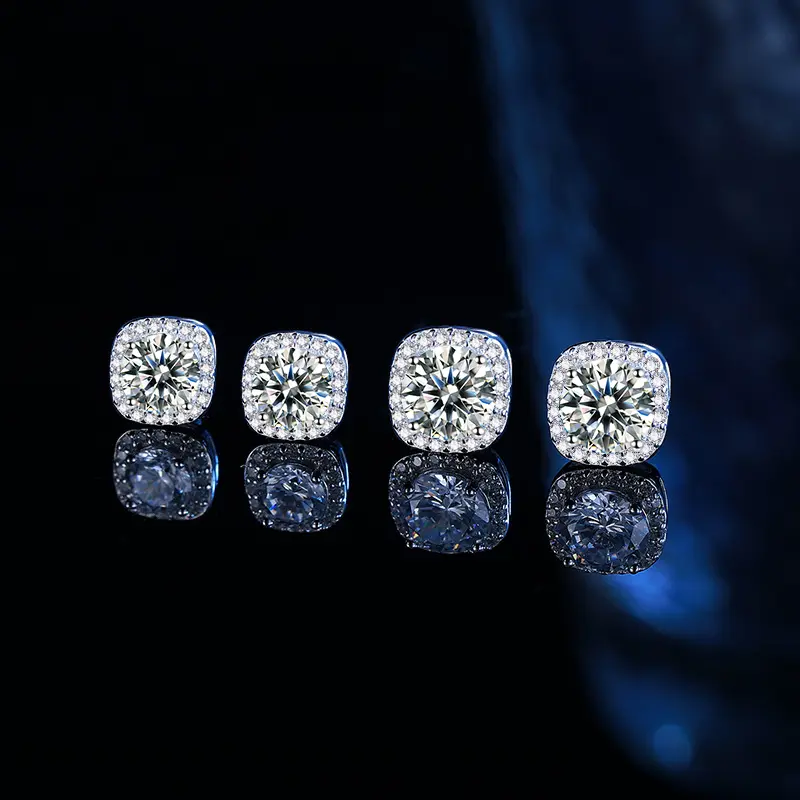 ·【Shiny】--The Earrings showcase 0.3cara/0.5carat/1carat/2carat moissanite gem in center, all around are shiny cz. Moissanite is tougher and will not chip as easily or lose brilliance as fast thus making it a good choice for buyers looking for excellent jewelry at reasonable price.