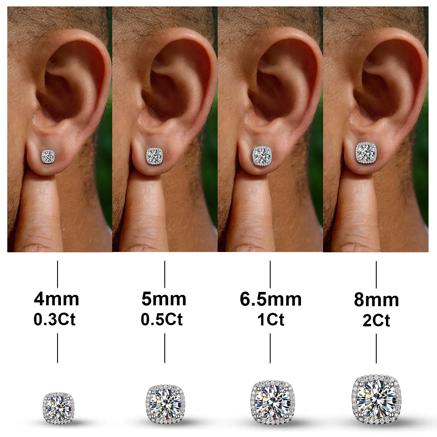 ·【Non Pierced Moissanite Earrings】--The Moissanite Non Pierced 4mm/5mm/6.5mm/8mm Stud Earrings are Stylish and elegant choice for both men and women, meet your different matching needs, add more attraction to your style.