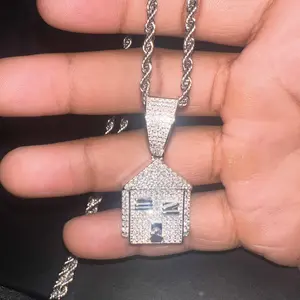 5. 【#P289】New Synthetic Moissanite Iced Out Bling House Shaped Pendants Necklaces 925 Sterling Silver Charm For Men Women Hip Hop Jewelry Gifts