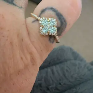 I purchased this as a ring I can wear to work in place of my actual engagement ring. Sizing is accurate, the sparkle is insane and the gold doesn’t look fake. Overall, five stars. Of course, we will see how it wears with daily use.