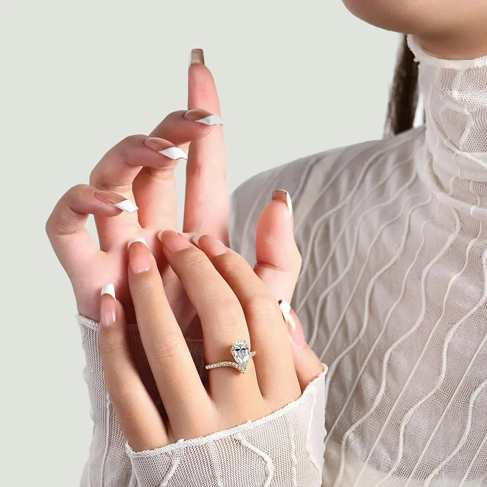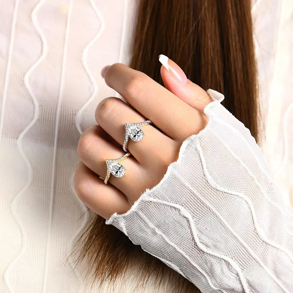 5. Pear Cut Synthetic Moissanite Ring 3CT D Color VVS1 for Women Anniversary Gift Fine Jewelry R056