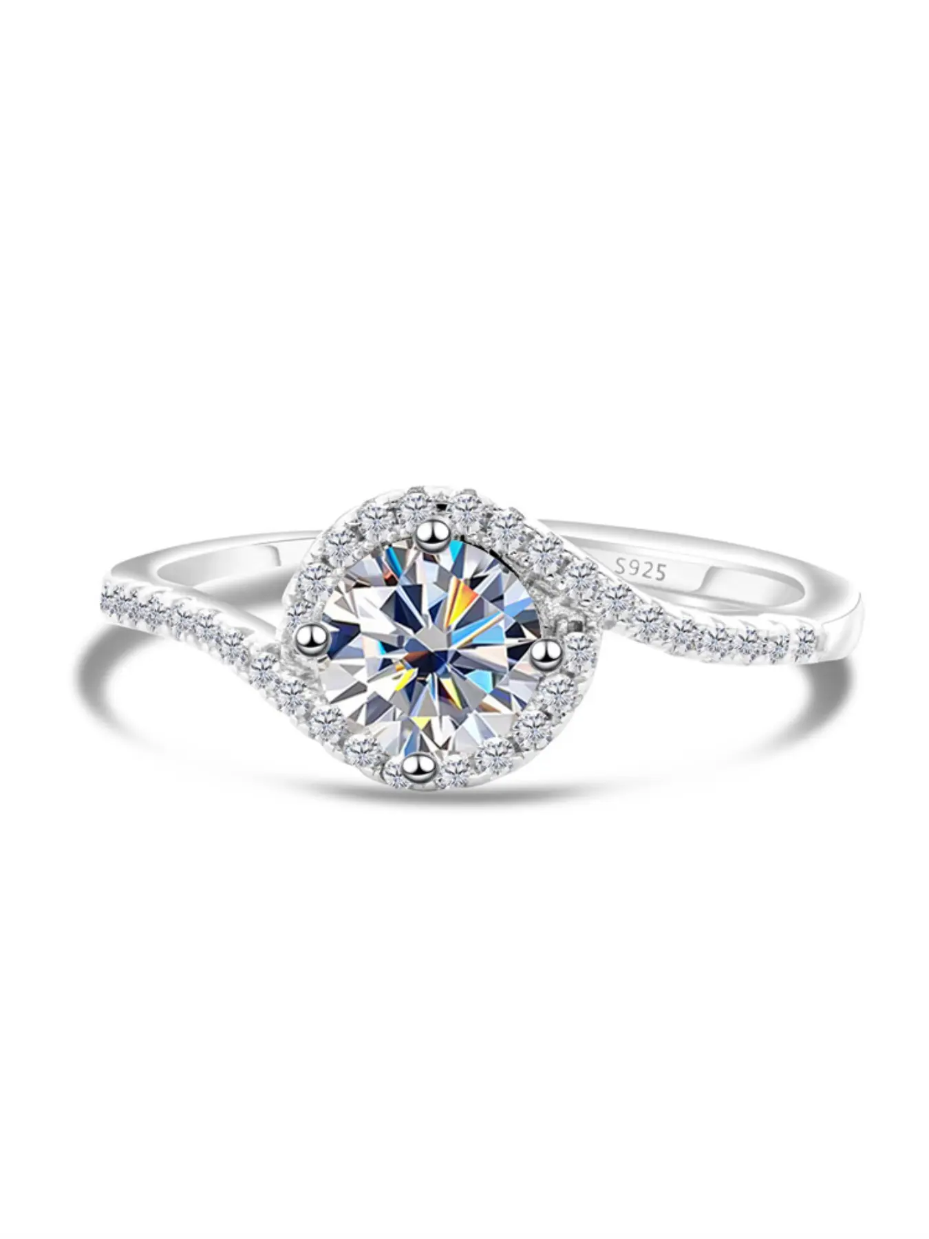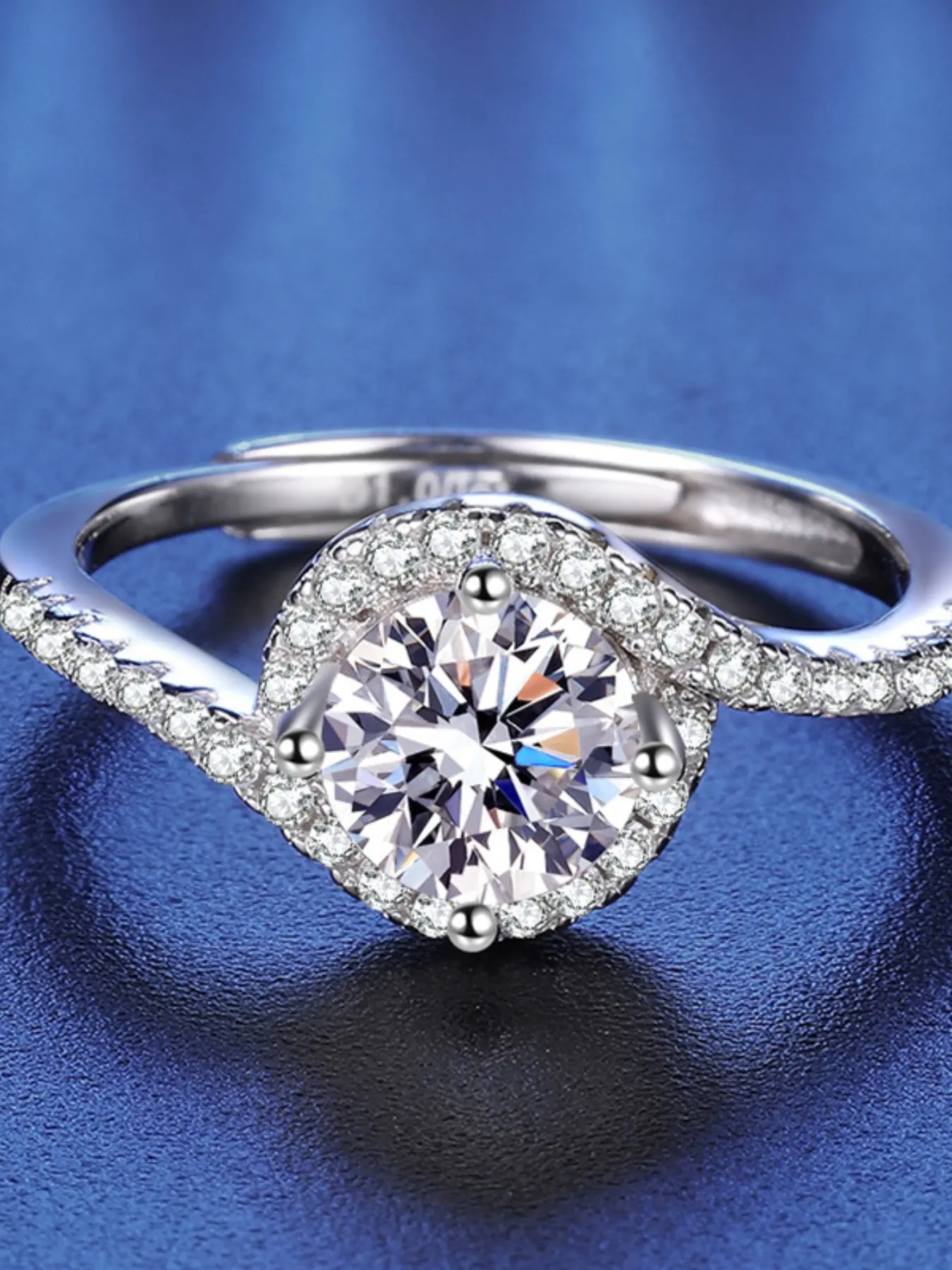 Moissanite 925 Silver Ring, Adjustable Open Design, Elegant Gift for Wife Girlfriend Daughter, Birthday Valentine's Wedding Anniversary, Elegant Engagement Ring