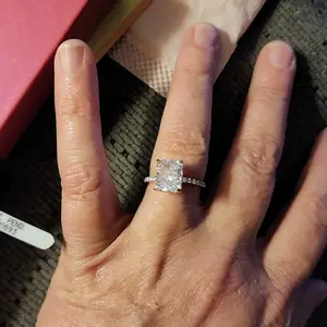Absolutely love this ring. Came really quickly, less than 2 weeks. The price is astonishing considering it's 4 ct and 925 Sterling silver. It is so sparkly and gorgeous. The pictures and video do not do it justice at all. Absolutely incredible. Fits like a glove and came with a polishing cloth.