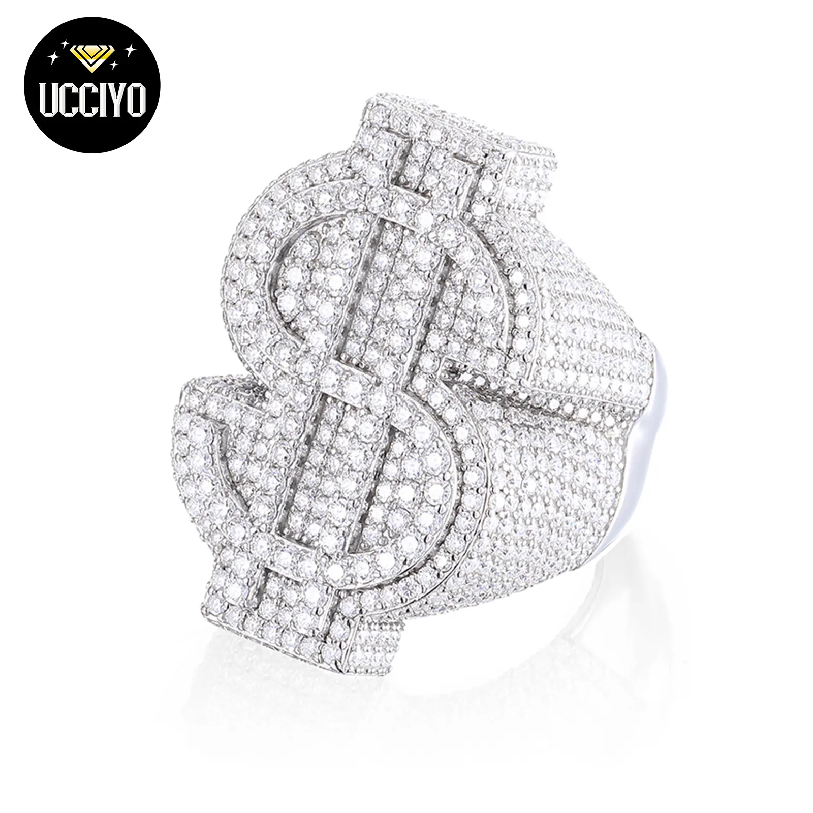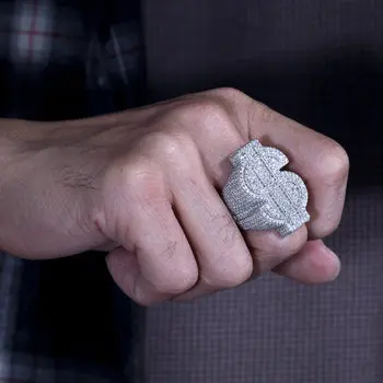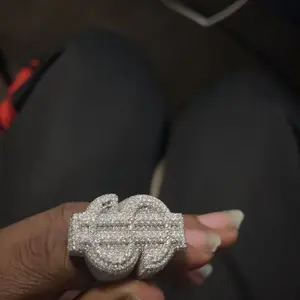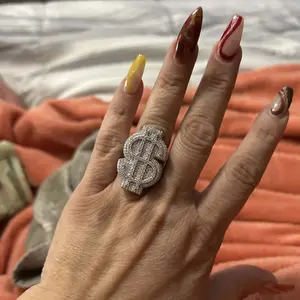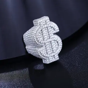 5. 【#R66】Original Design 925 Sterling Silver Synthetic Moissanite Ring, Exquisite Dollar Sign Ring for Men and Women Hip Hop Jewelry Gift Fashion Accessories