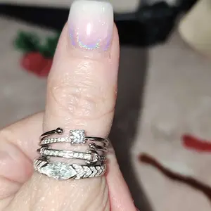 So pretty and fits nice. Very shiny where it counts. And pretty 😍😍 does not tarnish or turn finger green. 💕
