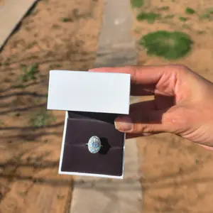 Beautiful ring , well packaged; each ring came with a box , a little bag and a cloth .