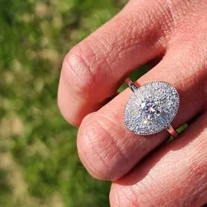 THIS RING IS GORGEOUS, it’s not as big as the enhanced pictures . This Ring Really looks elegant on & the Brilliant ✨ Shine really stands out . Ladies this is a Must have as every day jewelry & I can wear it on my Ring finger 😍