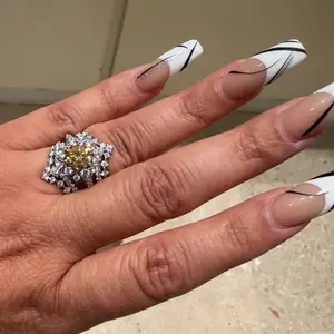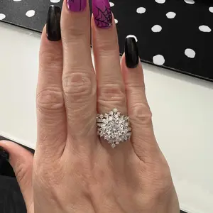 Stunning piece! The sparkle and shine is stunning. The design is so unique! You can wear alone or pair with your fav ring enhancers! Absolutely gorgeous!