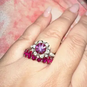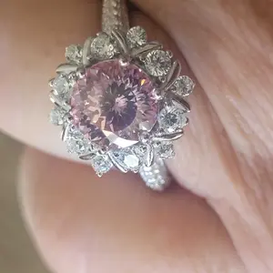 This may be my very favorite purchase so far. Customized in dragon fruit moissanite, it is glorious! So stunning I might need to order it in a couple more colors. Honestly cannot take my eyes off it.